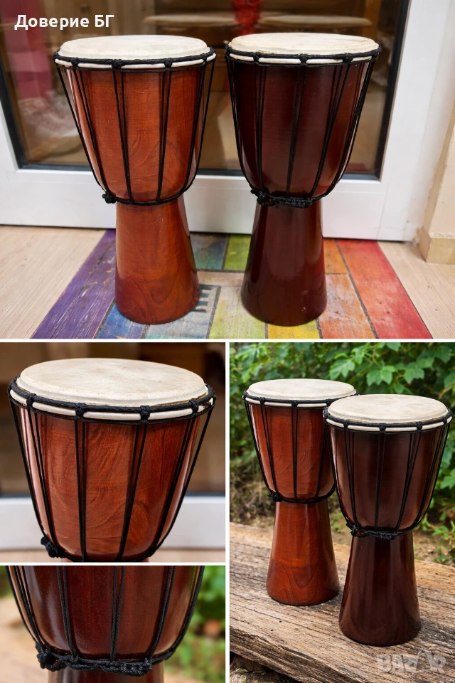 Продавам африканска терамбука (дарбука), изцяло ръчно изработена от естествени материали. Инструментът е с автентичен африкански характер и професионално звучене, подходящ за сценично свирене, студио, джем сешъни и домашна употреба. Терамбуката е изработена от масивно дърво махагон (Mahogany) – едно от най-предпочитаните дървета при високия клас терамбуки, заради топлия, дълбок и плътен звук и добрата устойчивост. Мембраната е от 100% естествена кожа, която осигурява ясен, жив и мощен тон. Това не е масово производство. Всяка терамбука е уникална и има собствен характер. Подходяща е за професионални музиканти, любители на перкусиите, ценители на ръчната изработка и колекционери на етно музикални инструменти. Ключови думи: терамбука, дарбука, африканска терамбука, ръчна изработка, перкусионен инструмент, етно инструмент, махагон, естествена кожа, африкански барабан, професионална терамбука.