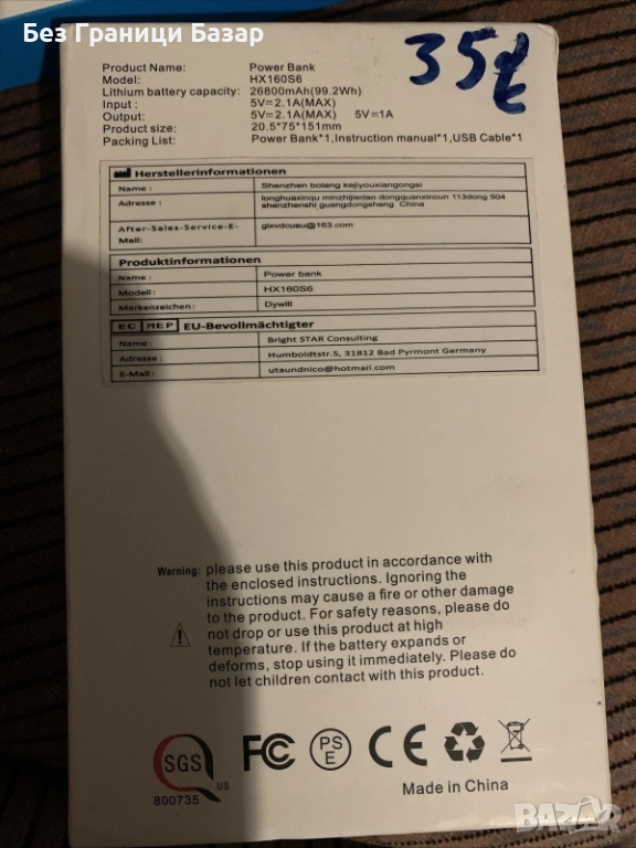 Нова слънчева Соларна външна батерия 26800mAh Type-C 2xUSB LED фенер Power Bank