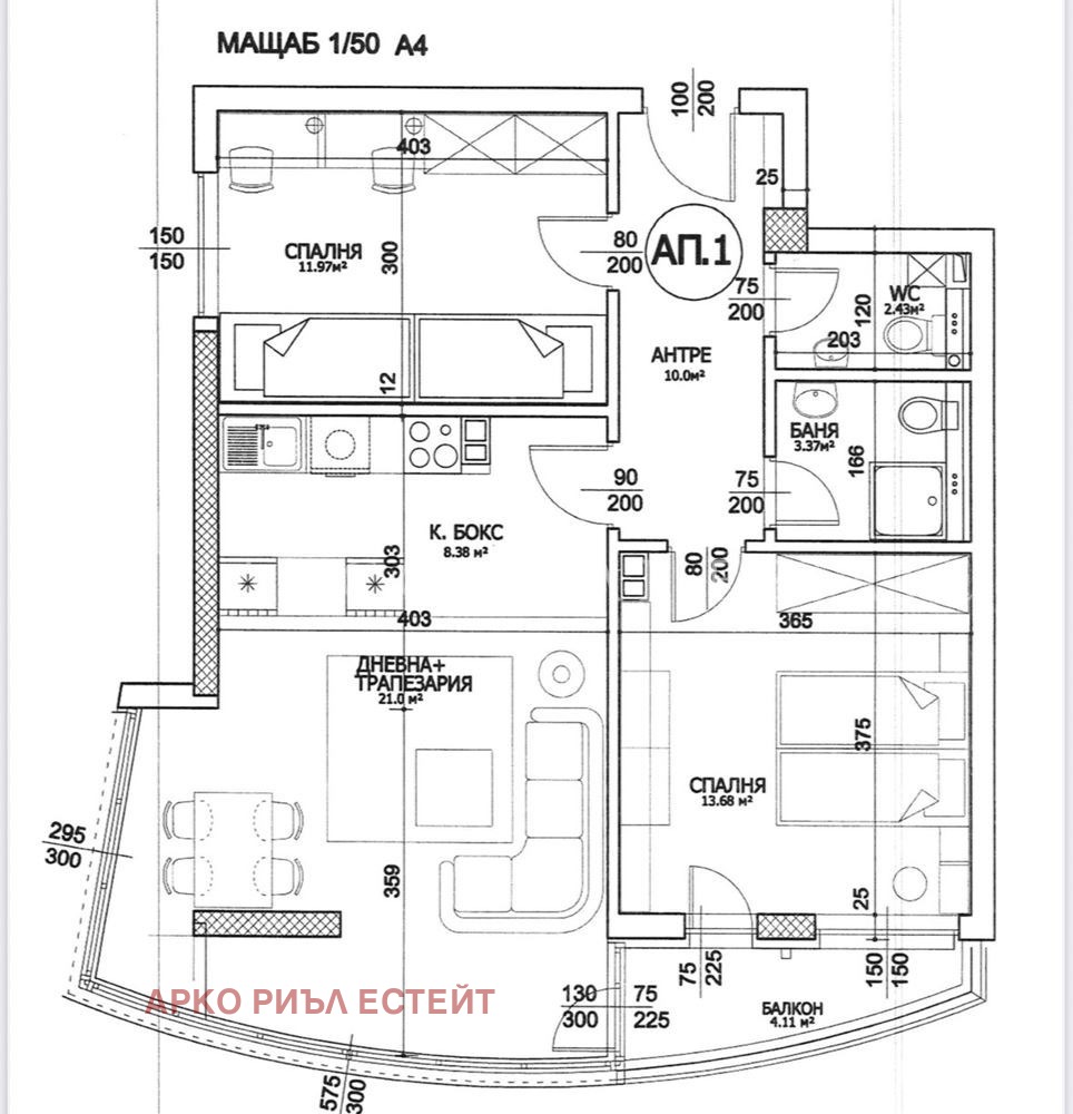Апартаментът разполага с функционално разпределение, много естествена светлина, която създава усещане за простор и комфорт.