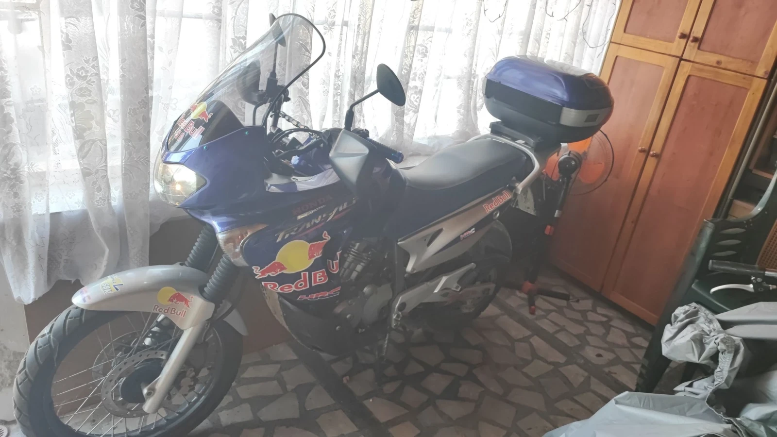 Мотора е в отлично състояние. Нов внос. Регистриран е февруари месец. Всичко платено. Последния фейс на модела. Обслужен, масла , филтри , антифриз и т. н. Няма течове и шум. Перфектни зъбчатки и верига. Пари за него не съм жалил. Каран е около 300км в България. Причината за продажба е , че катастрофирах с камион (не с мотоциклета) и съм с три операции и не мога да го карам. Има закупен Краш бар висок на стойност (450лв ), халогени и инсталация (150 лв)за тях, (всичко подарък), но не мога да ги сложа тъй като трудно се придвижвам (с патерици), затова и снимките са такива не мога да го поместя за по добри. Подарявам и чифт накладки за бъдеща смяна, засега не е необходима смяната. Има средна и странична стойка. Два ключа. Преглед до 2027г. Седалката е тапицирана с мемори пяна . Висока слюда на Givi както и куфар Givi за две каски. Оригинален инструмент под седалката. Възможен бартер за чопър . За повече инфо звъннете. . .