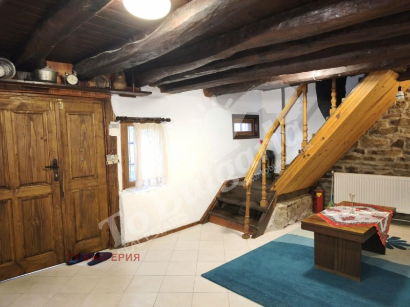 ID:21263 Реновирана възрожденска къща под наем с четири спални, разположена в живописно и тихо селце само на 6км от гр.Дряново. Жилищната площ е 180кв.м., която е разпределена между два етажа. На първия етаж има входно антре, всекидневна с кухненски бокс и две бани с тоалетни. Вътрешно стълбище отвежда към втория етаж, където се помещават четири спални. Имотът се отоплява с локално парно на пелети с водна риза и монтирани радиатори във всяка стая. Къщата е с PVC дограма. Дворът е с площ 600кв.м. разполага с навес за автомобил и барбекю.