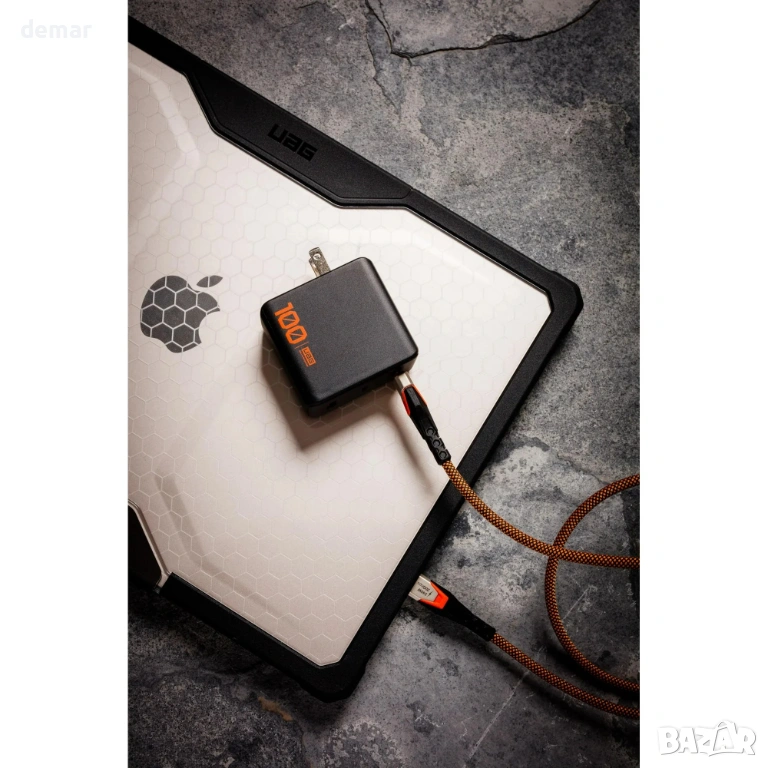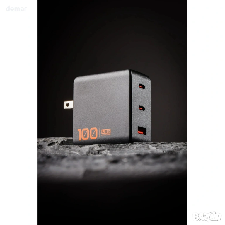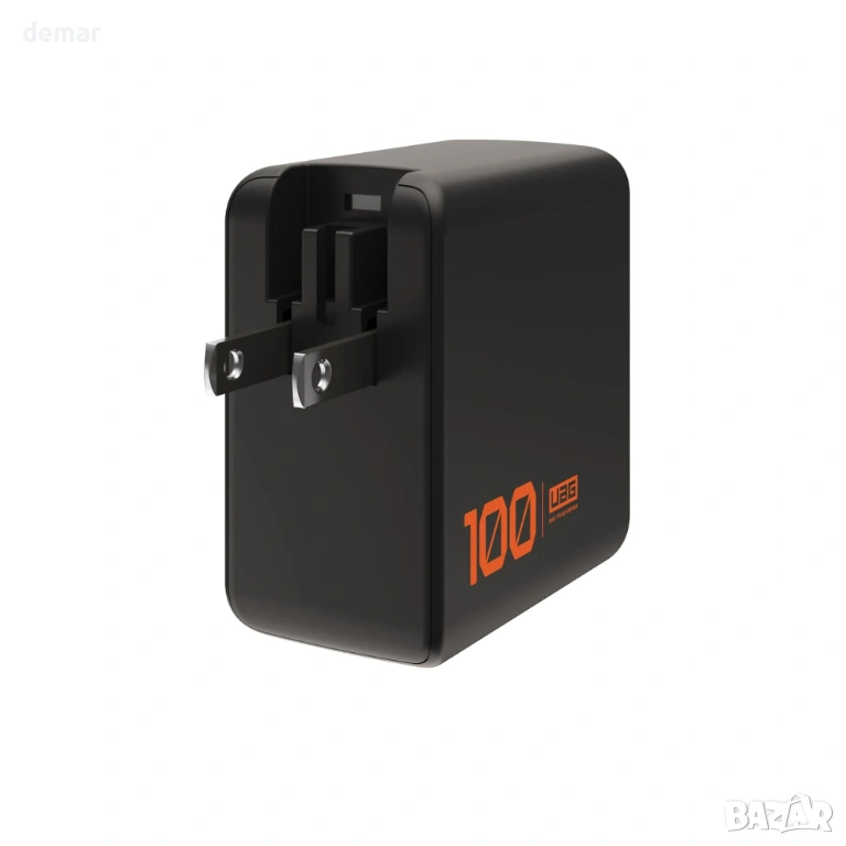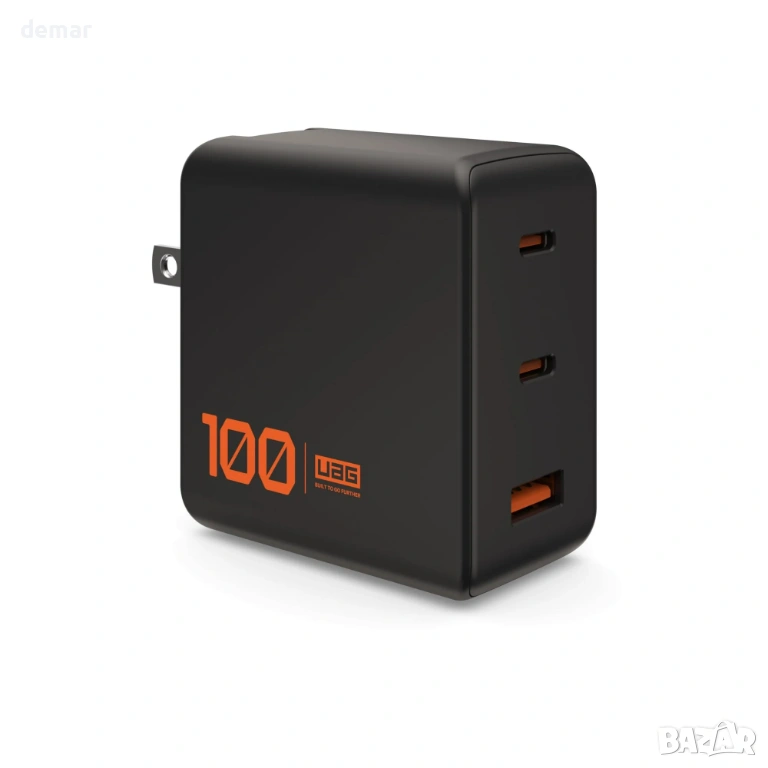 UAG SRG 100W GaN 3-портово зарядно с универсален щепсел, черно