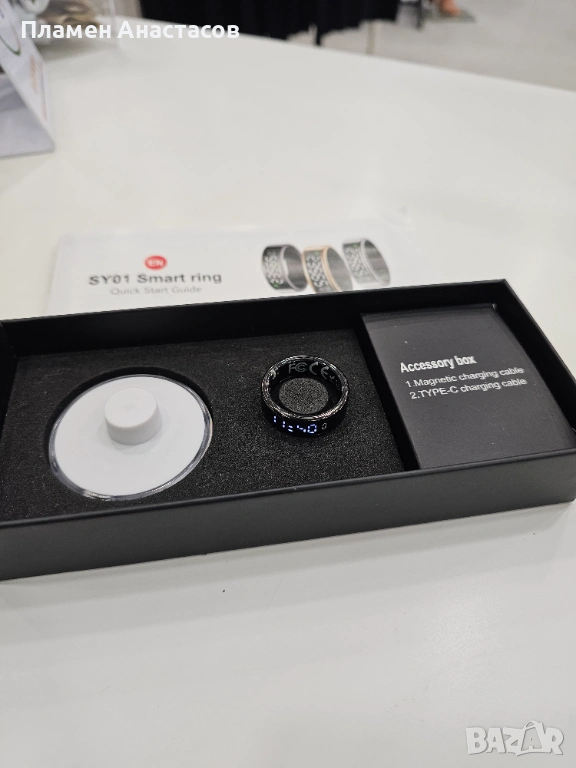 Модерен смарт пръстен с LED дисплей, който съчетава стилен минималистичен дизайн и интелигентни функции за проследяване на здравето и активността. Компактен, лек и удобен за носене, той е перфектна алтернатива на гривните и смарт часовниците.