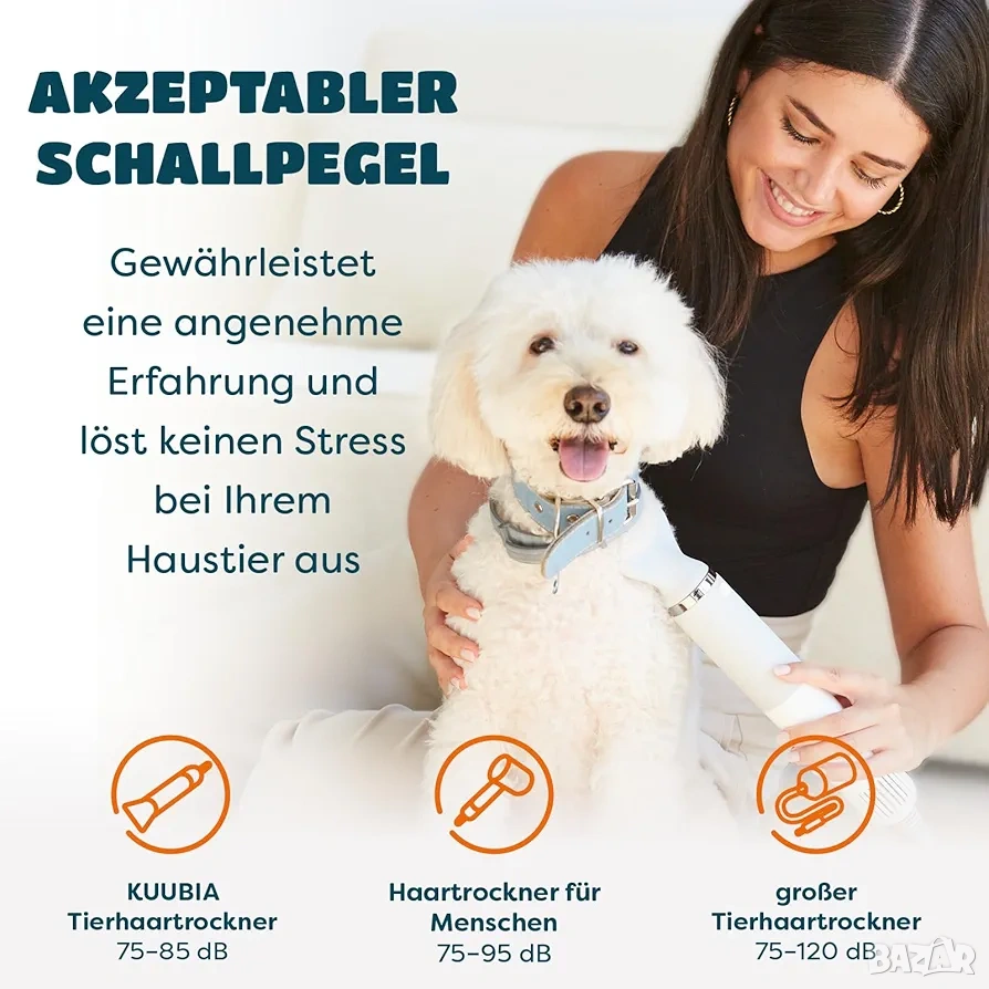 сешоар за кучета, груминг сешоар, четка за кучета, грижа за козината, KUUBIA, сешоар за домашни любимци, тих сешоар за животни, уред за разресване, груминг аксесоари