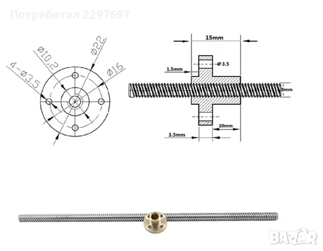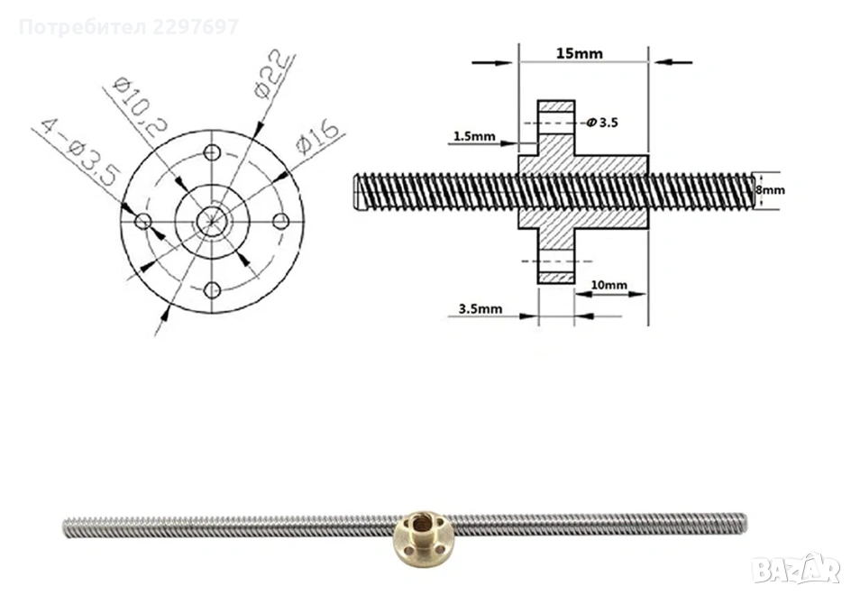 Стъпка 2 мм Олово / стъпка на винт 10 мм