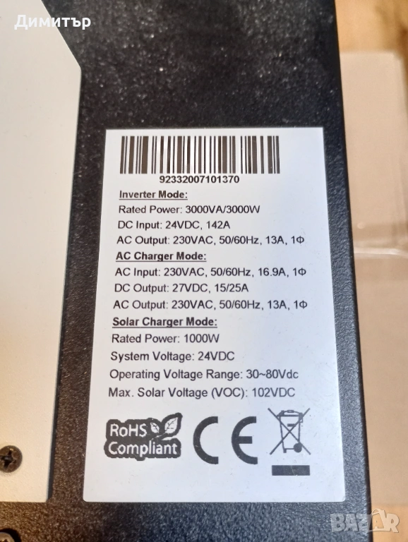 инвертор 3KW 24V за фотоволтаици до 1KW
