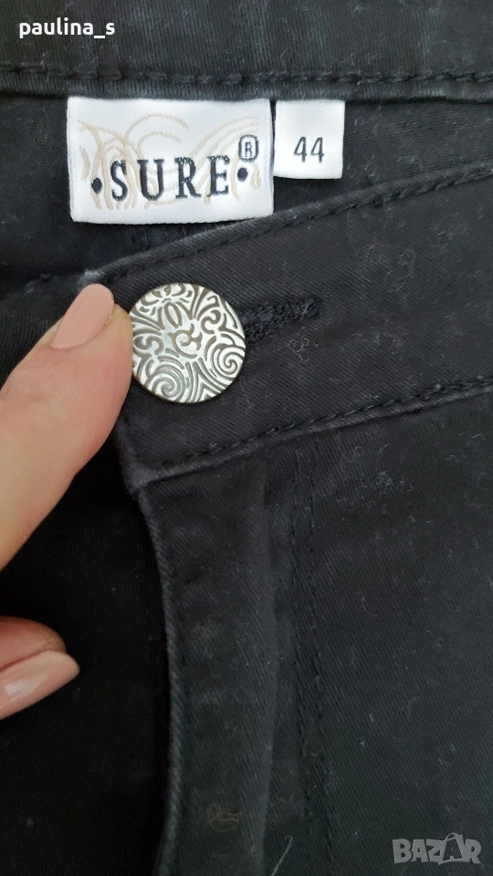 1️⃣. 2XL / 3XL - AWG Mode center "Sure". Цената е крайна, без пазарлъци 20 евро. Дамски черни еластични дънки, по етикет са 44EU, но стават и за 46EU. Платът е еластичен здрав, брезентов Деним, с избелващ ефект. Моделът е 5 pocket Denim standard, с леко стеснение крачоли, релефни кабси и копче, цепки на крачолите. Една бройка, става за посочените размери, като нови. Реална цената 50 евро, моята е 20 евро.