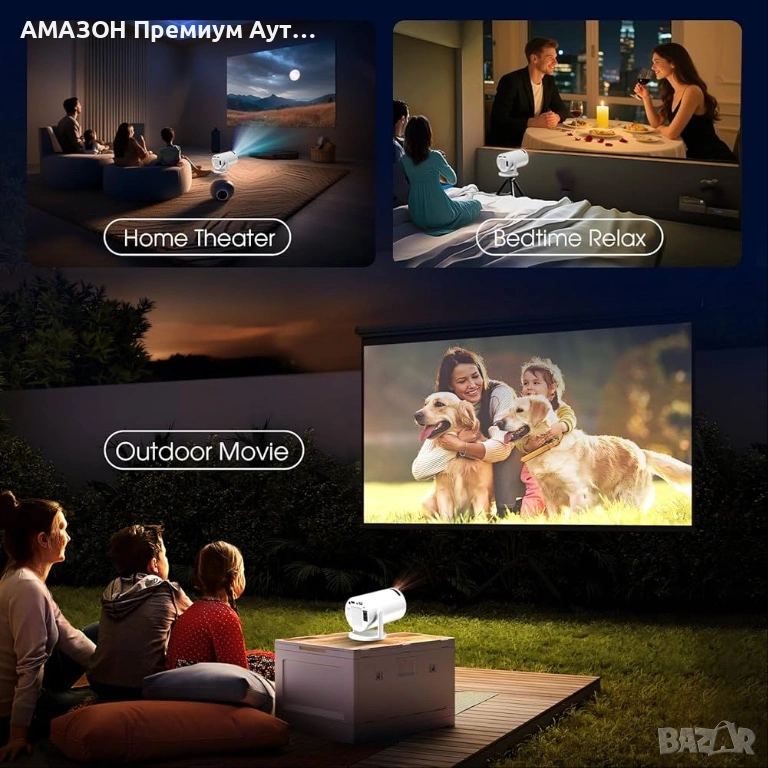 GAIMOO GM200 Мини проектор 1080P/FHD/4K/2024/Android TV/WiFi 6/BT5.2/180°/HDMI/TV Stick/USB/PS5