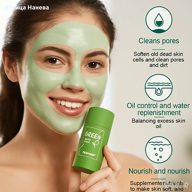 Маска почистване на лице със зелен чай под формата на стик - HZS9 → Обява 53281530
