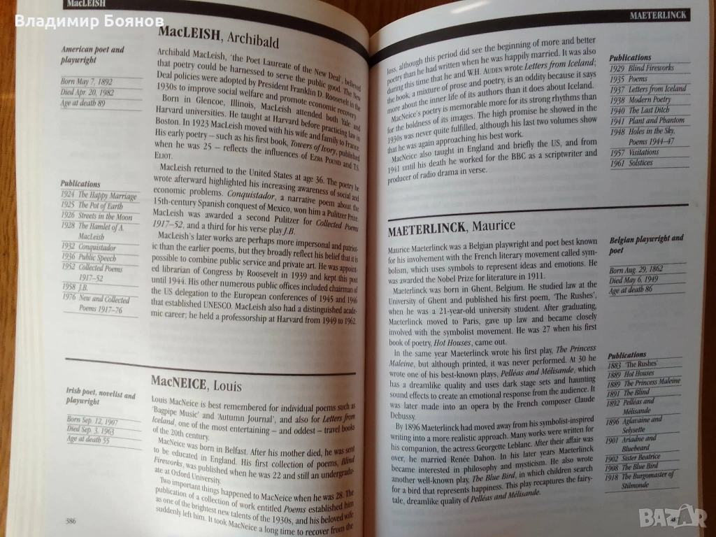 с изчерпателни биографични данни и техните произведения.