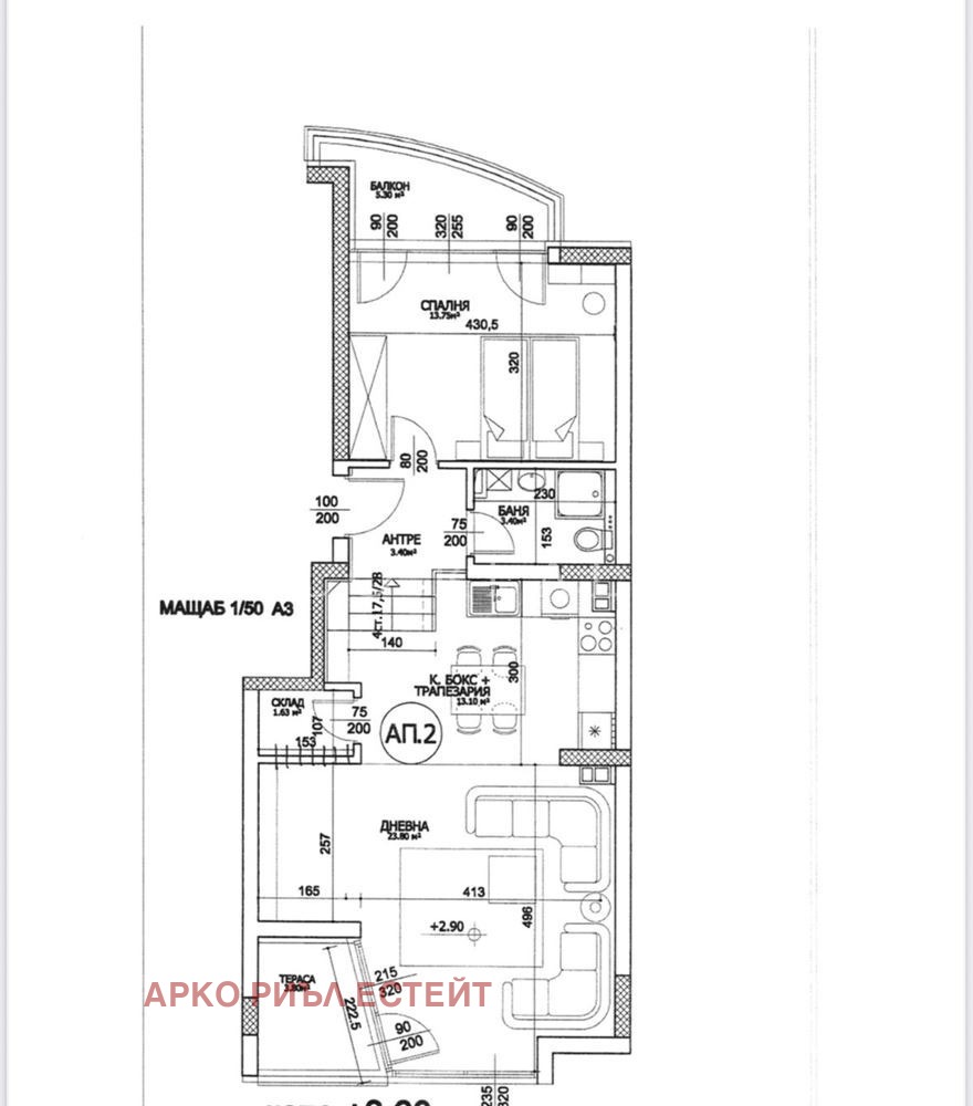Жилището се състои от голяма дневна с кухненски бокс, спалня и баня с тоалетна. Включено е парко място в ценатаЧ