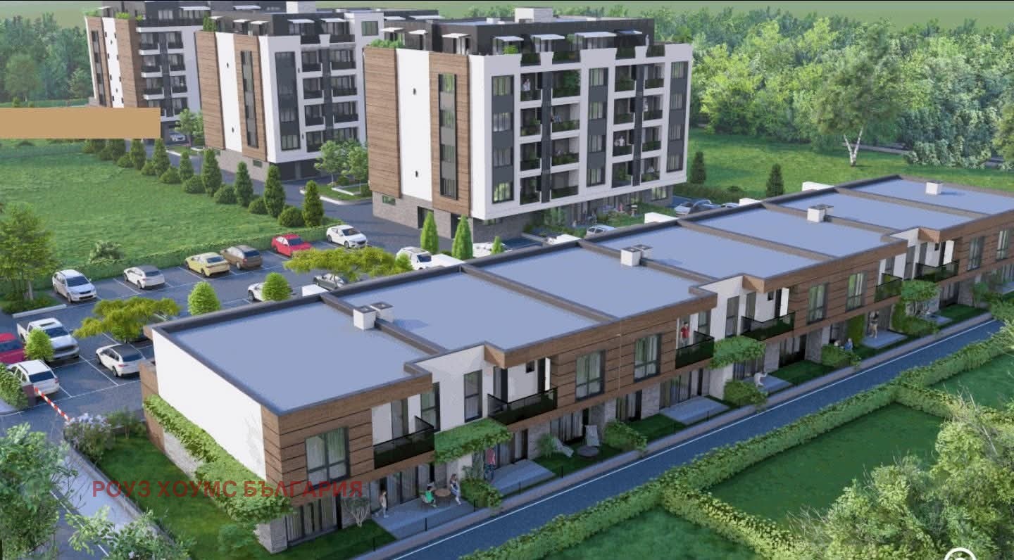 Пространството между сградите е оформено с озеленени площи, които допринасят за спокойствието, естетиката и усещането за хармония с природата.