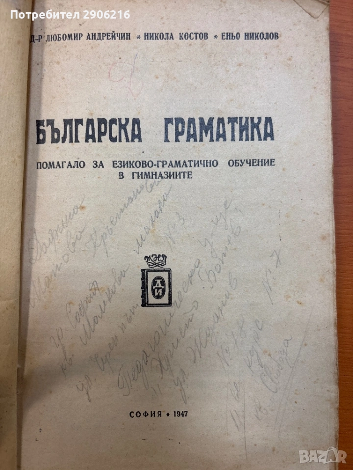 ΠΡΠΈΠ³ΠΈΠ½Π°Π»Π½ΠΎ ΠΈΠ·Π΄Π°Π½ΠΈΠ΅ βΠΡΠ»Π³Π°ΡΡΠΊΠ° Π³ΡΠ°ΠΌΠ°ΡΠΈΠΊΠ°β, Π‘ΠΎΡΠΈΡ, 1947 Π³.