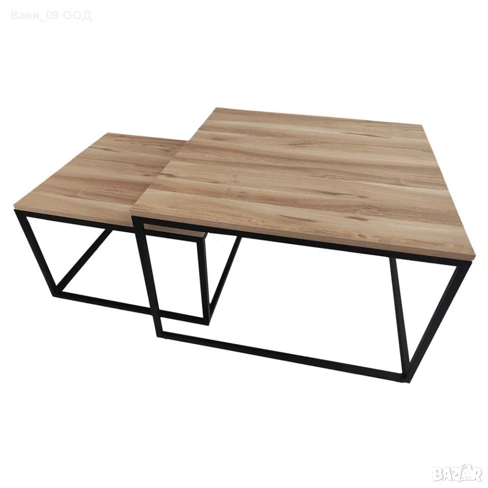 Сет от 2 броя холни маси с плот в светла дървесна текстура и размери: 80/80/50 см; 60/60/40 см
