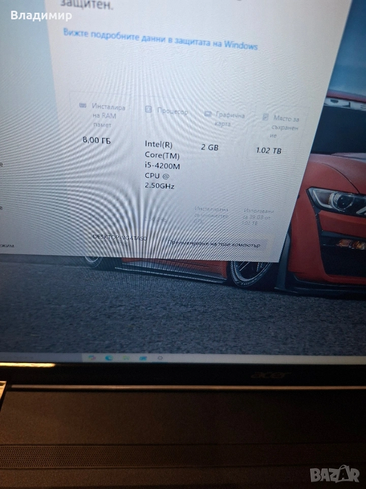 Продавам лаптоп Acer Aspire E1-772G intel core i5-4200M-2.50Ghz