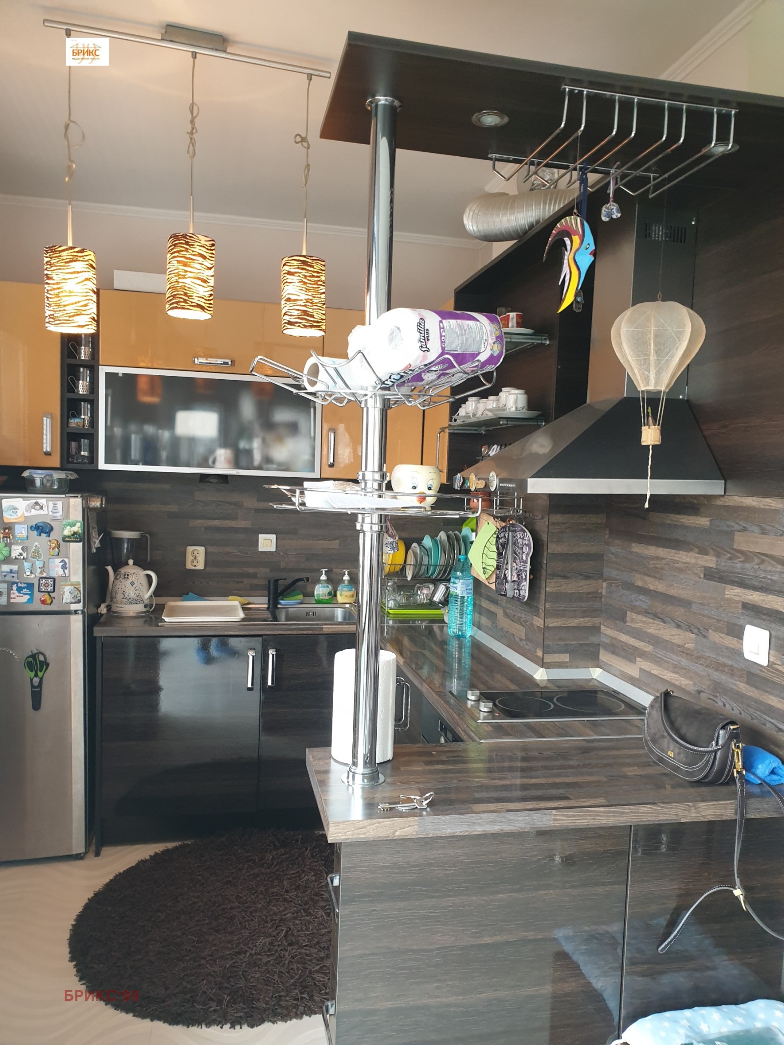 Състои се от много светла и слънчева отворена дневна зона, комбинираща хол, с френски прозорци и балкон, трапезария и светла кухня с балкон , самостоятелна спалня и баня с тоалетна. Сградата има асансьор. Настилката в антрето, хола и кухнята е красив гранитогрес, а в спалнята-ламиниран паркет.