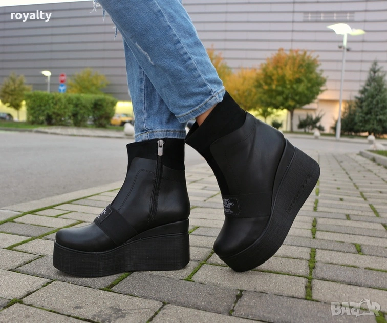 Боти на платформа - черна кожа → Обява 53282376