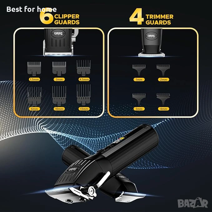 МОЩЕН МОТОР И ТИХА ТЕХНОЛОГИЯ - Както машинката за подстригване, така и тримерът са оборудвани с високопроизводителни мотори с медна сърцевина, което позволява на машинката да работи по-бързо и по-ефективно при 7000 оборота в минута. Машинката за подстригване с голям размер е подходяща за гъста и мокра коса, без дърпане или слепване, осигурявайки ви по-комфортно подстригване. Всички машинки за подстригване са оборудвани с най-новата технология за намаляване на шума, която гарантира ниво на шум под 60 децибела по време на работа.