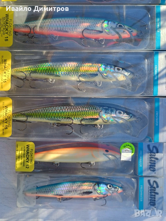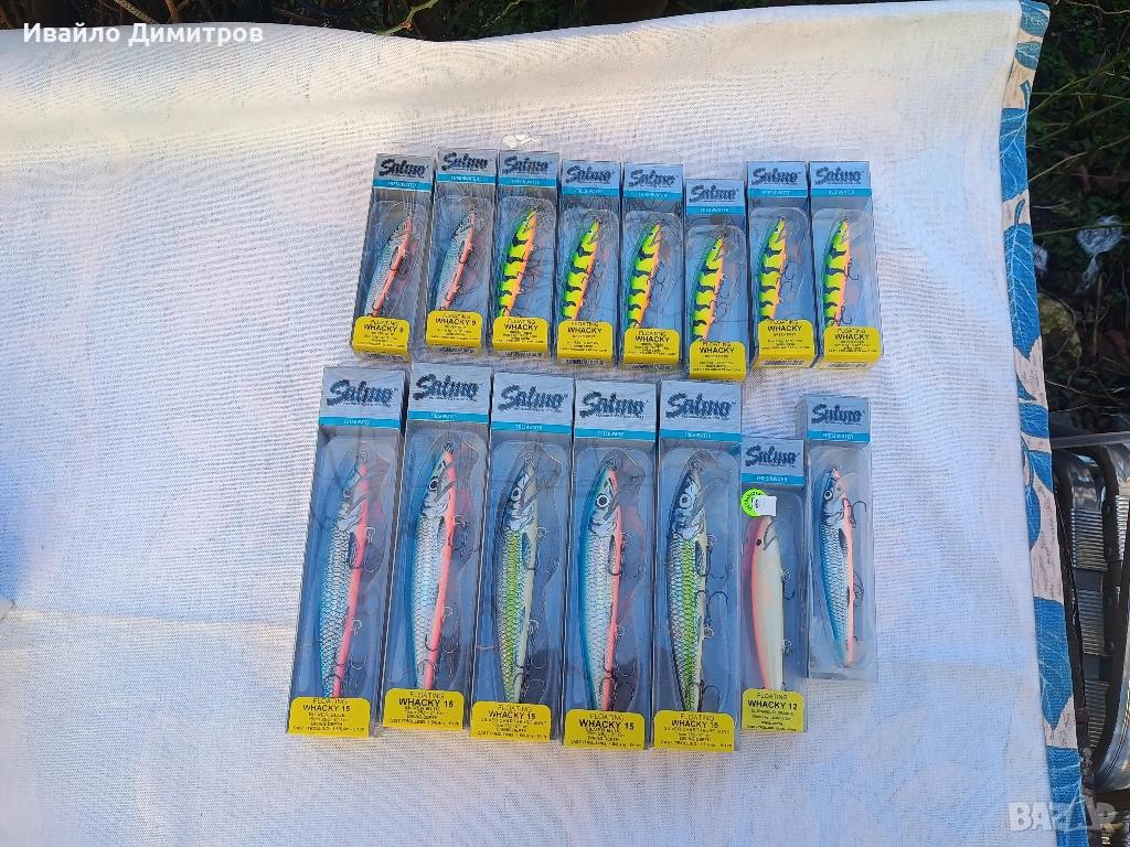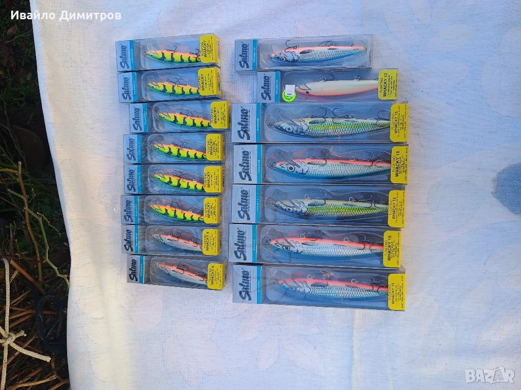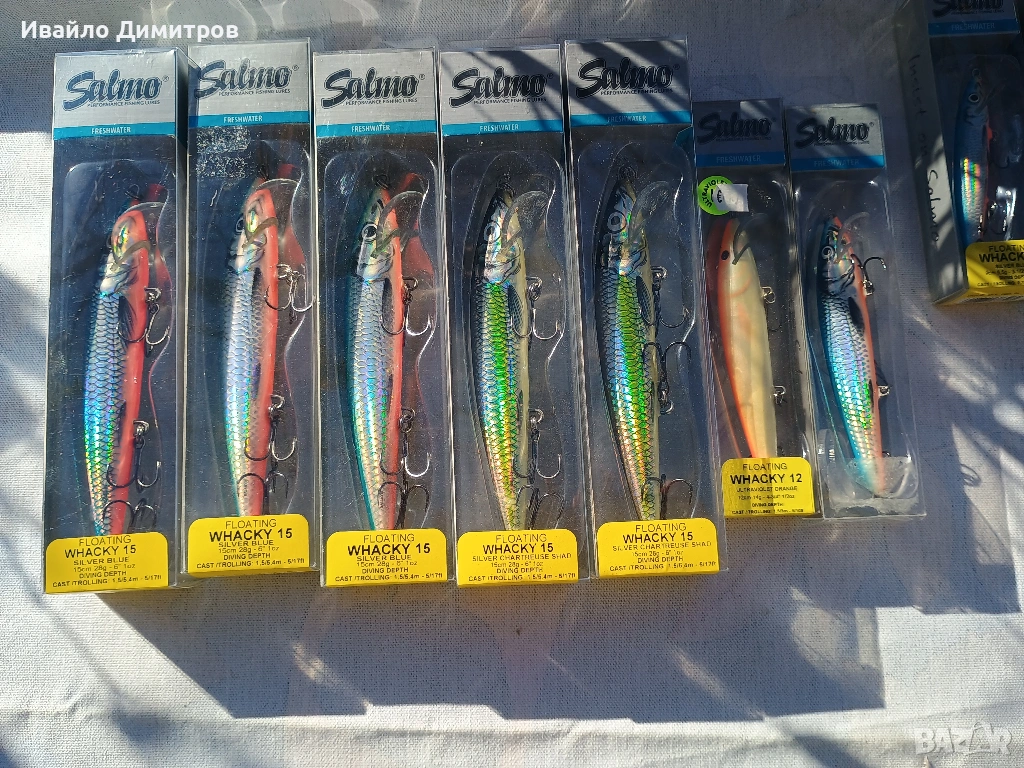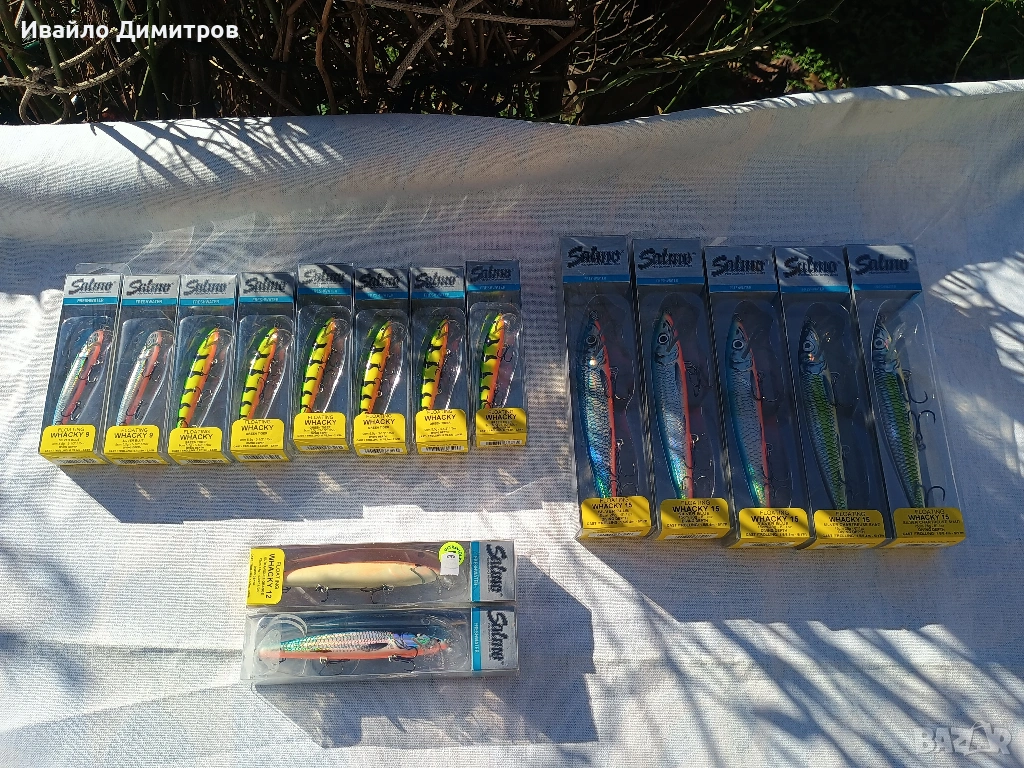 Продавам нови воблери спрени от производство Salmo Whacky - подходящи за тролинг и кастинг. Размери 9, 12 и 15 сантиметра.