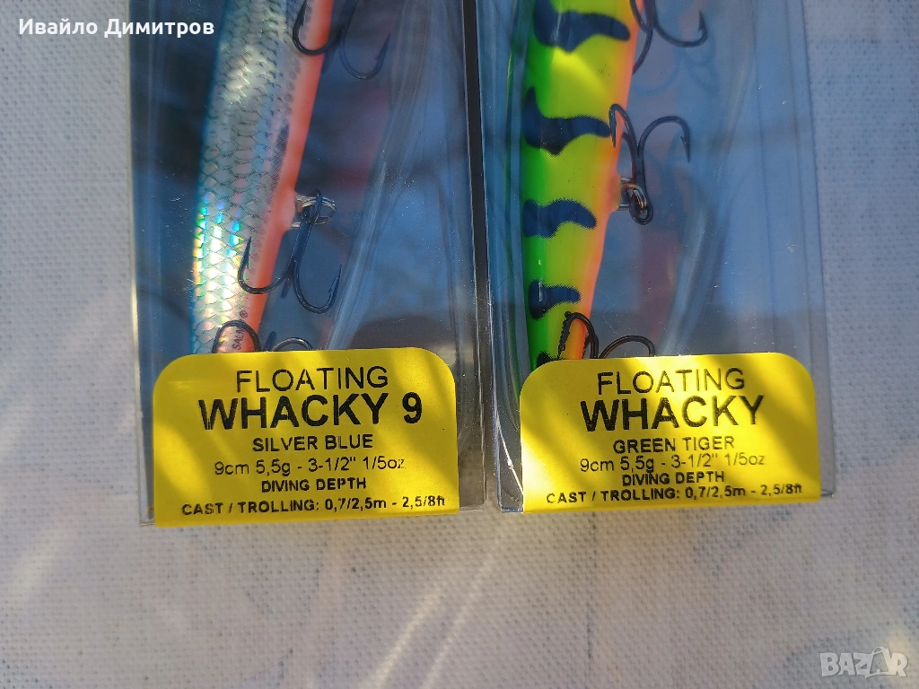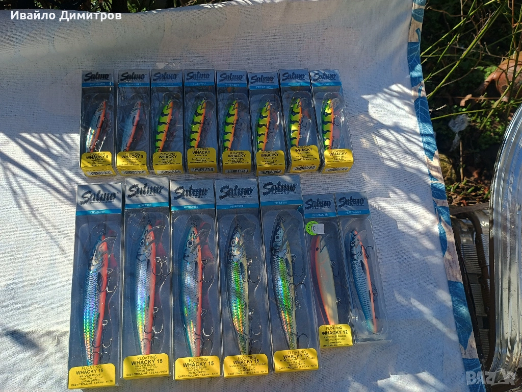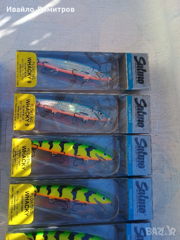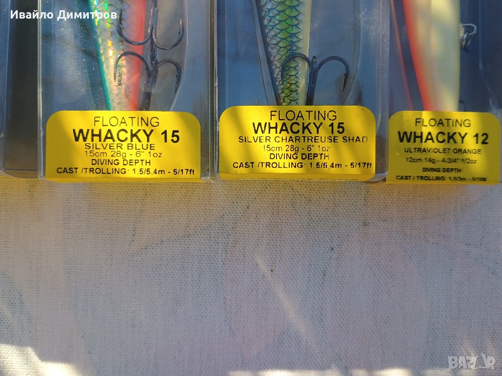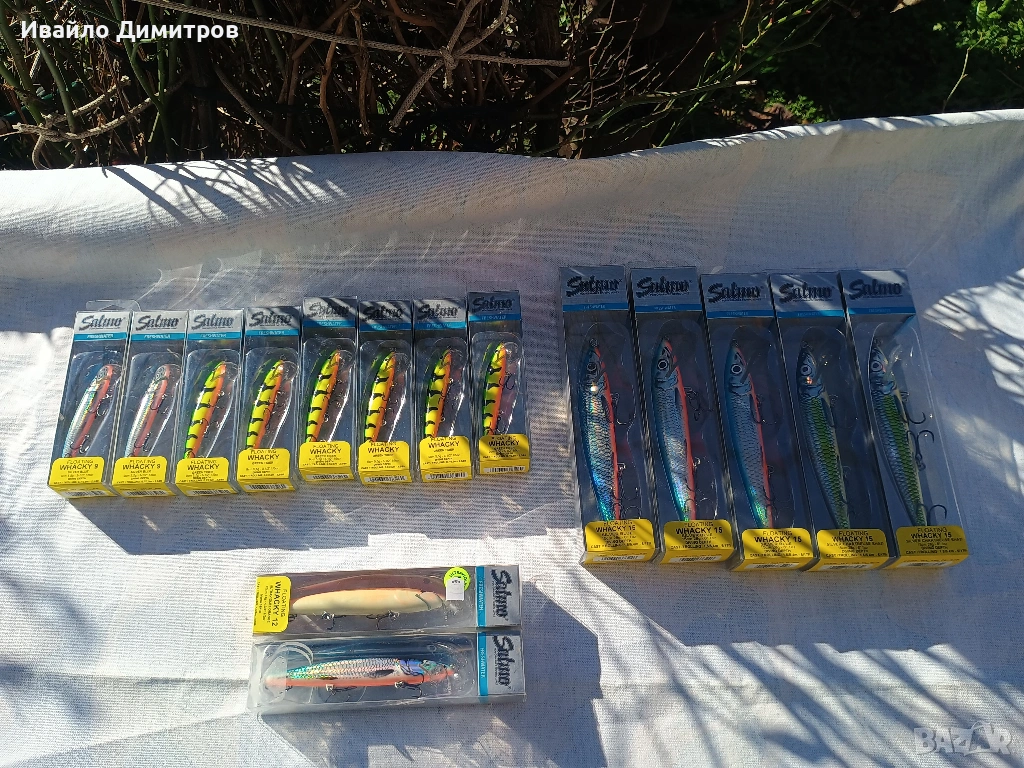 Продавам нови воблери спрени от производство Salmo Whacky - подходящи за тролинг и кастинг. Размери 9, 12 и 15 сантиметра.