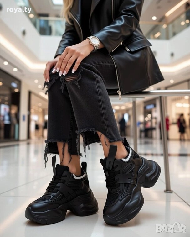 Кецове на платформа - черна кожа и мрежа → Обява 53282659