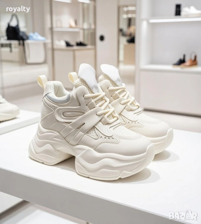 Кецове на платформа - бежова кожа и мрежа