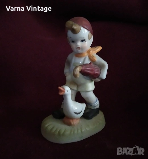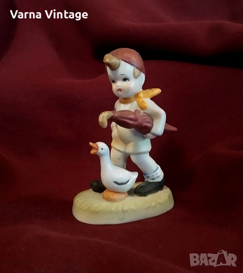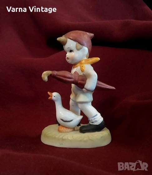 Колекционерска порцеланова фигурка на момче с чадър и гъска. → Обява 53282675