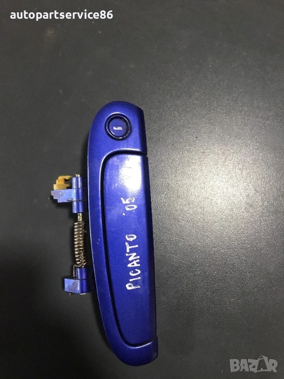 Дръжка за предна лява външна врата син цвят за KIA Picanto  (2003-2007) 050329, снимка 1 - Части - 53282842 Дръжка за предна лява външна врата син цвят за KIA Picanto  (2003-2007) 050329, снимка 2 - Части - 53282842 Дръжка за предна лява външна врата син цвят за KIA Picanto  (2003-2007) 050329, снимка 3 - Части - 53282842 1/3
