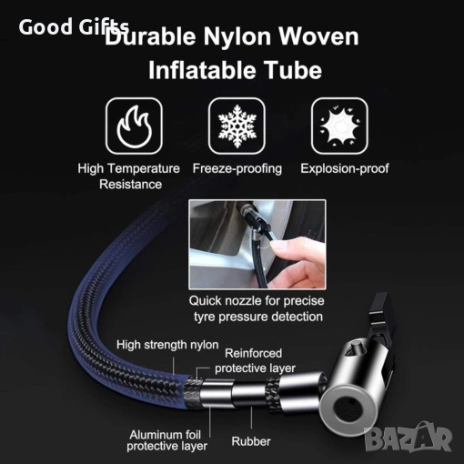 Мощна производителност: Надува до 18 литра в минута при максимално налягане от 10 бара – подходящо за коли, мотори, велосипеди и топки.