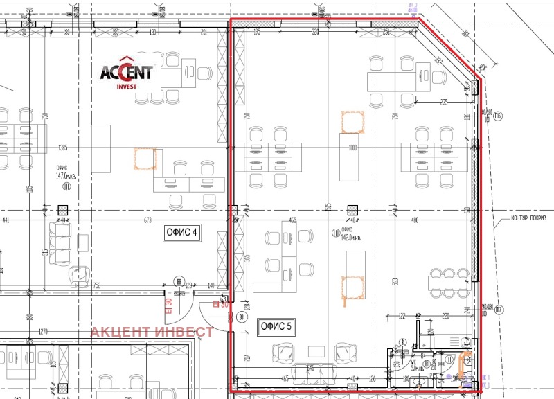 KOD 21578 'Акцент Инвест' Ви предлага офис помещение за продажба в кв. 'Възраждане' 4. Имотът е с обща площ от 196 кв.м. и се състои от едно оупън-спейс помещение и санитарен възел с предверие. Към имотът има включенио едно паркомеясто в цената, с площ от 12 кв.м. Сградата ще бъде изградена от стоманобетонна конструкция и сандвич панели. Очаква се да бъде започната март месец 2026-та година, като срокът на изпълнение е 18 месеца от датата на започване. Офисът ще бъде завършен по БДС. Посочената цена е без включен ДДС. В сградата се продават още 5 офиса, като има възможност за обединение с някой от тях.