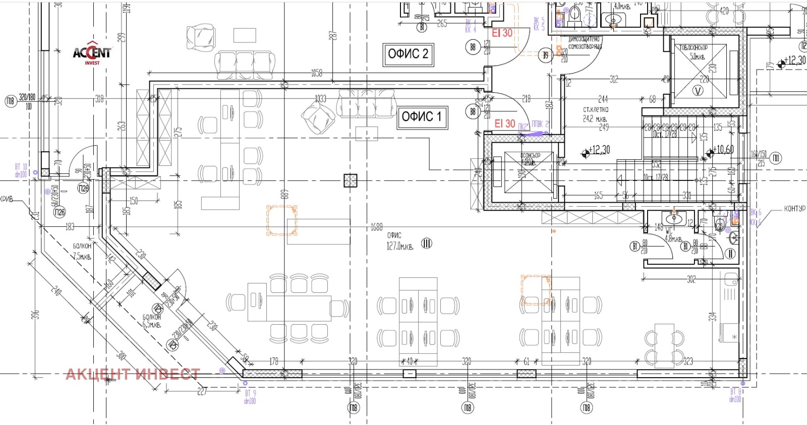KOD 21571 'Акцент Инвест' Ви предлага офис помещение за продажба в кв. 'Възраждане' 4. Имотът е с обща площ от 188 кв.м. и се състои от едно оупън-спейс помещение и санитарен възел с предверие. Към имотът има включено паркомясто в цената, с площ от 14 кв.м. Сградата ще бъде изградена от стоманобетонна конструкция и сандвич панели. Очаква се да бъде започната март месец 2026-та година, като срокът на изпълнение е 18 месеца от датата на започване. Офисът ще бъде завършен по БДС. Посочената цена е без включен ДДС. В сградата се продават още 5 офиса, като има възможност за обединение с някой от тях.