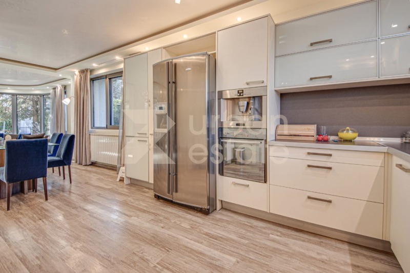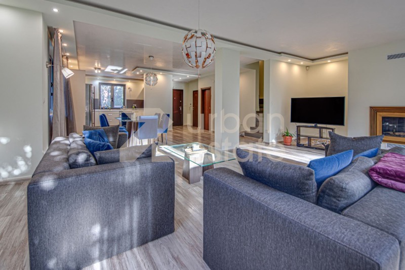 -Голяма и стилна оборудвана кухня, елегантна дневна с камина и излаз към вътрешен напълно уединен двор;