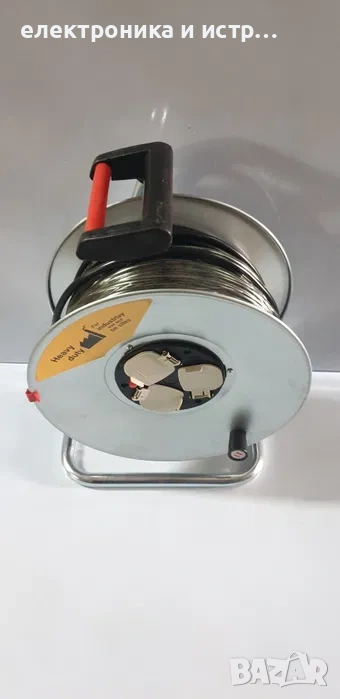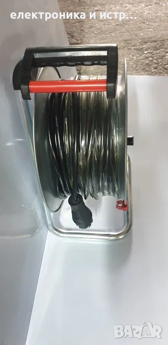 Макарата удължител е направена от неръждаема стомана и има галванизирана стойка за добра опора. За бързо издърпване и прибиране на кабела е предвиден и закрепен за ръкохватката водач, който насочва прецизно кабела по макарата. Ръкохватка е ергономична и удобна, което създава допълнителни удобство при употреба. Има 4 заземени контакта, тип ШУКО, които за допълнителна защита имат самозатварящи се капачета. Този удължител на макара намира широко приложение както при любителски, така и при професионални дейности. Осигурява надеждно и удобно електрическо захранване на отдалечени до 50 метра места.
