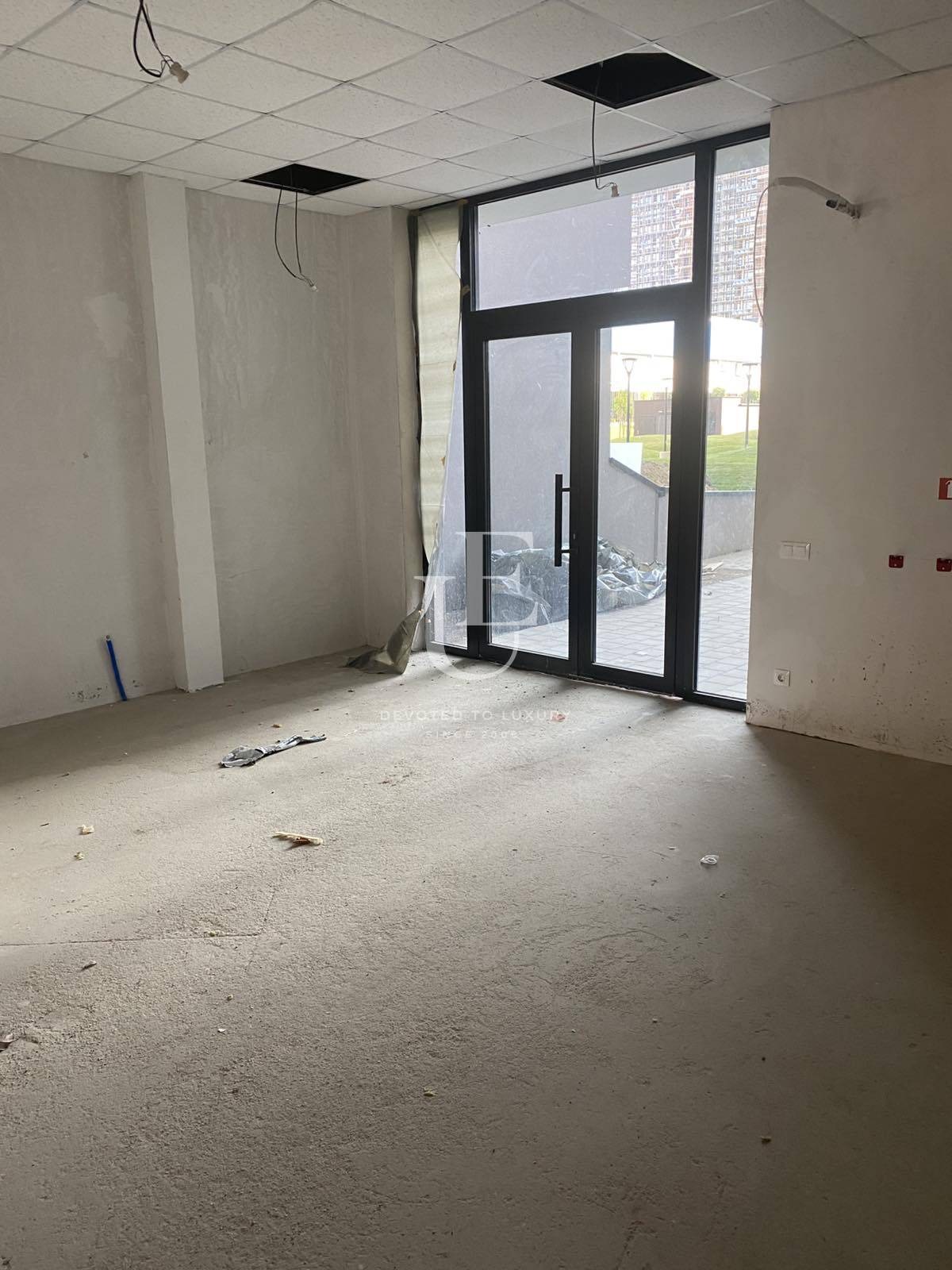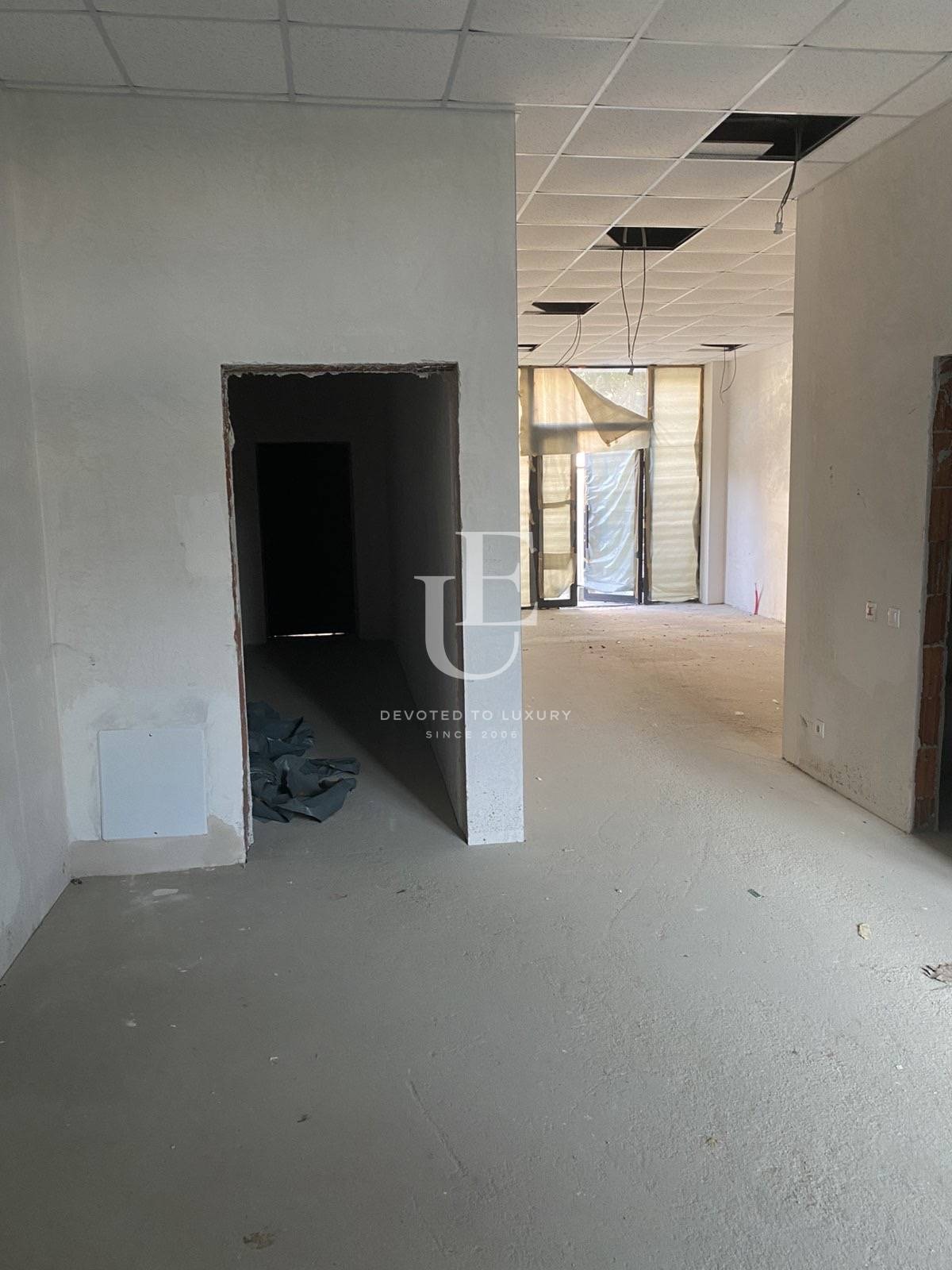 Помещението е с обща площ от 91 кв.м., разположено е на първи етаж от 17-етажна сграда и разполага с функционално разпределение, което включва open space, баня и тоалетна.