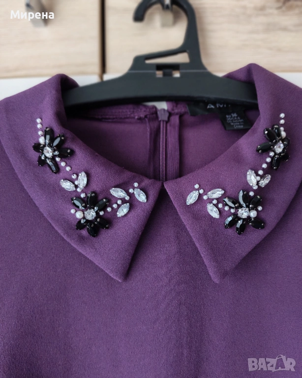 Лилава рокля до коляното с мъниста на яката AMISU → Обява 53283939