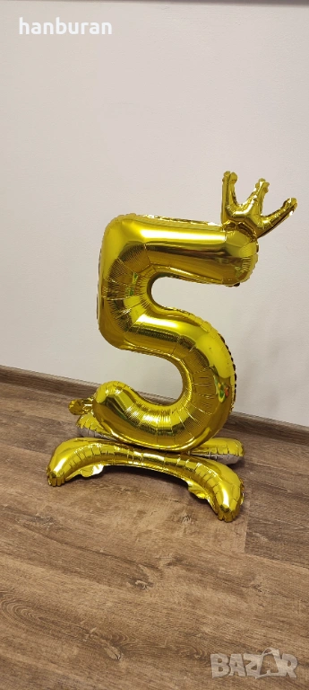 Фолиев балон, цифра 5 с корона. Използван е. Продава се така както го виждате на снимката.