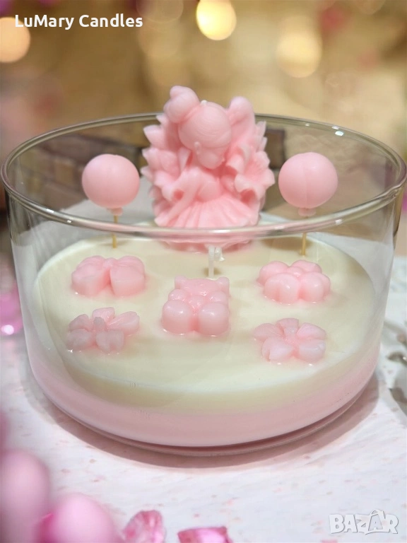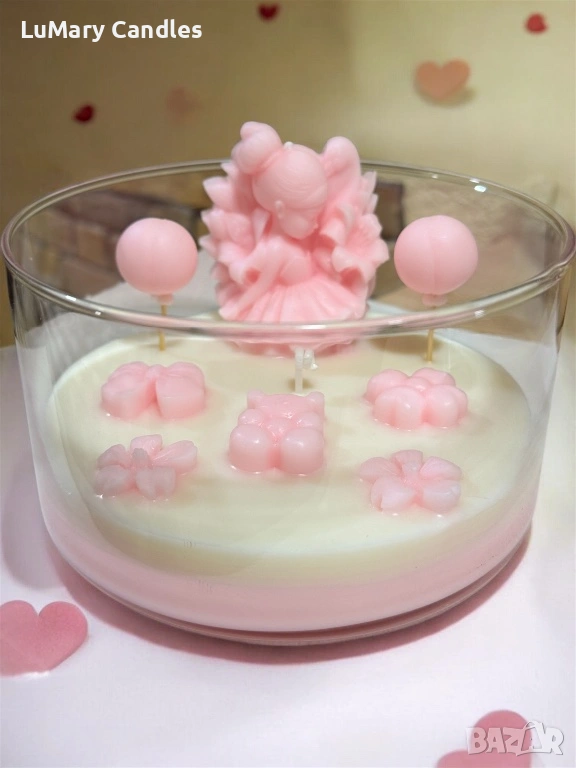 Розови детайли като бонбони, мека светлина и усещане за любов във въздуха.