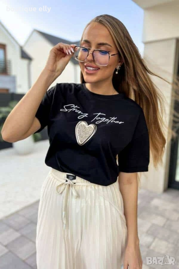дамска тениска в розово и черно, снимка 1 - Тениски - 53284323 дамска тениска в розово и черно, снимка 2 - Тениски - 53284323 1/2