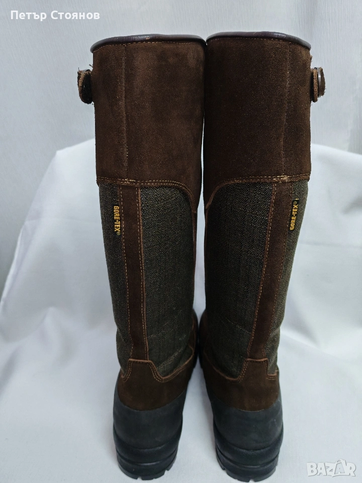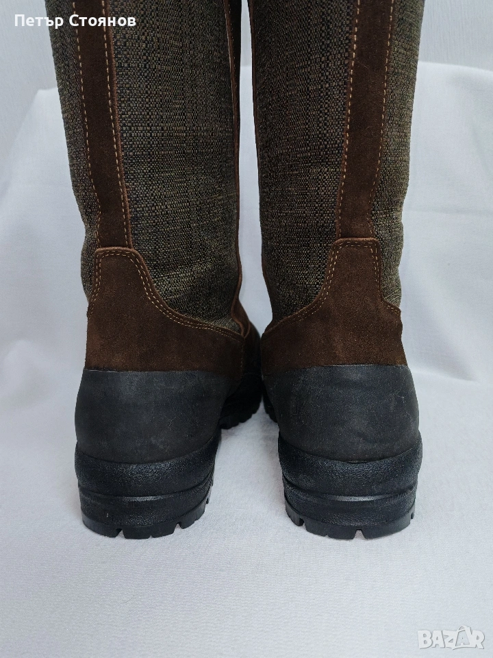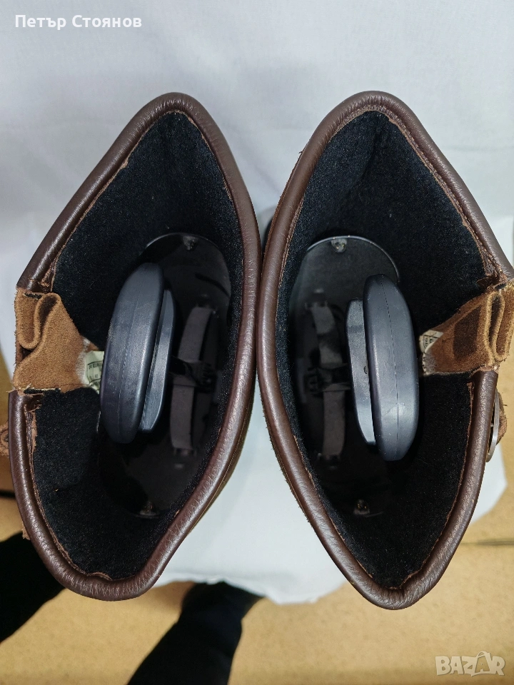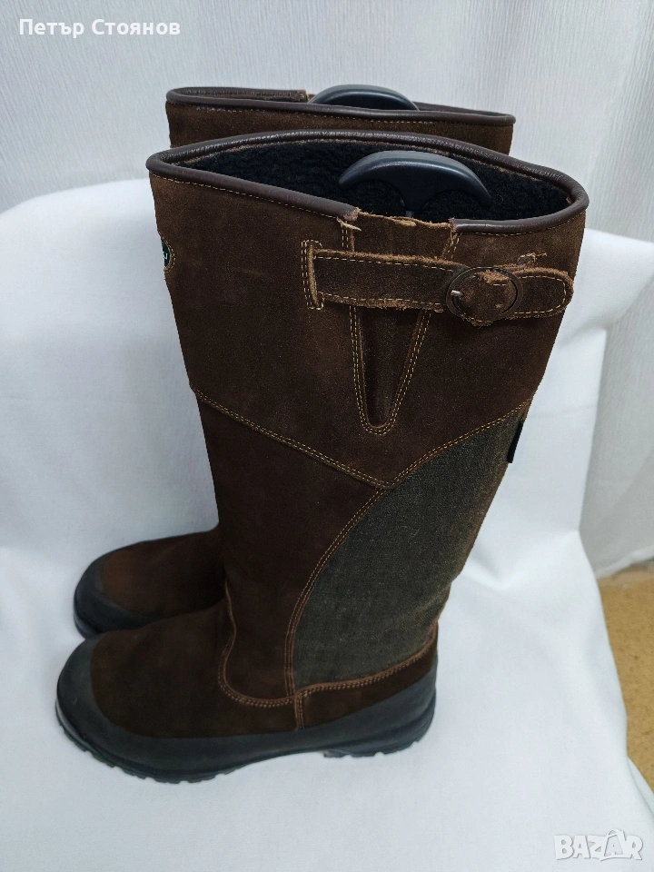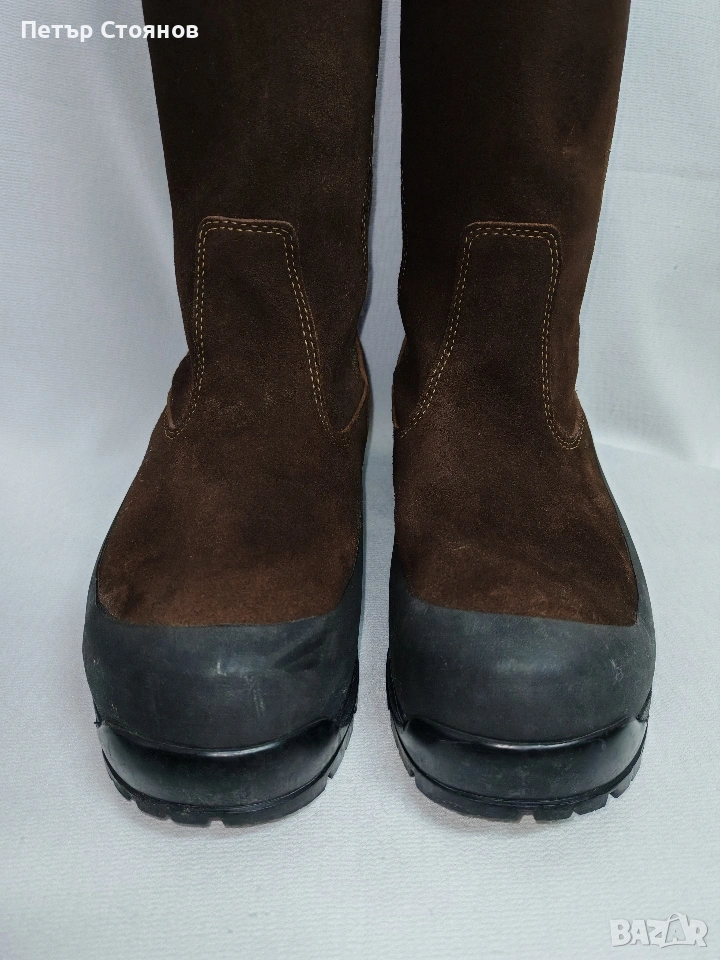 Предлагам страхотни маркови мъжки ботуши на марката Le Chameau. Обувките са купувани преди две години на цена от близо 300 евро. Ползвани са 4-5 пъти и са в отлично състояние. Изработени са от тъмнокафяв естествен велур, в комбинация с текстил , а в опсовата по подметката е облечено с полиуретан. Имат Gore tex мембрана и са водонепропускливи. Отмвътре са с топъл полиестер и стават за време с по-ниски температури. Подметката е Vibram, здрава и подходяща за ходене в сняг, лед и кал. Снимките са наравени без ботушите да се почистят или мият, за да се види реалното им състояние.