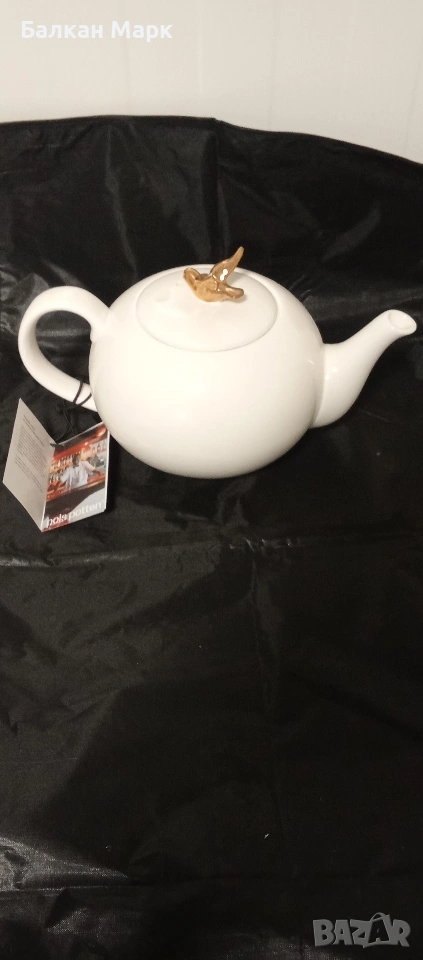 ⚠️ ВАЖНО: Чайникът има малко отчупване (транспортен дефект), което НЕ се вижда при поставено капаче.-показано на снимките