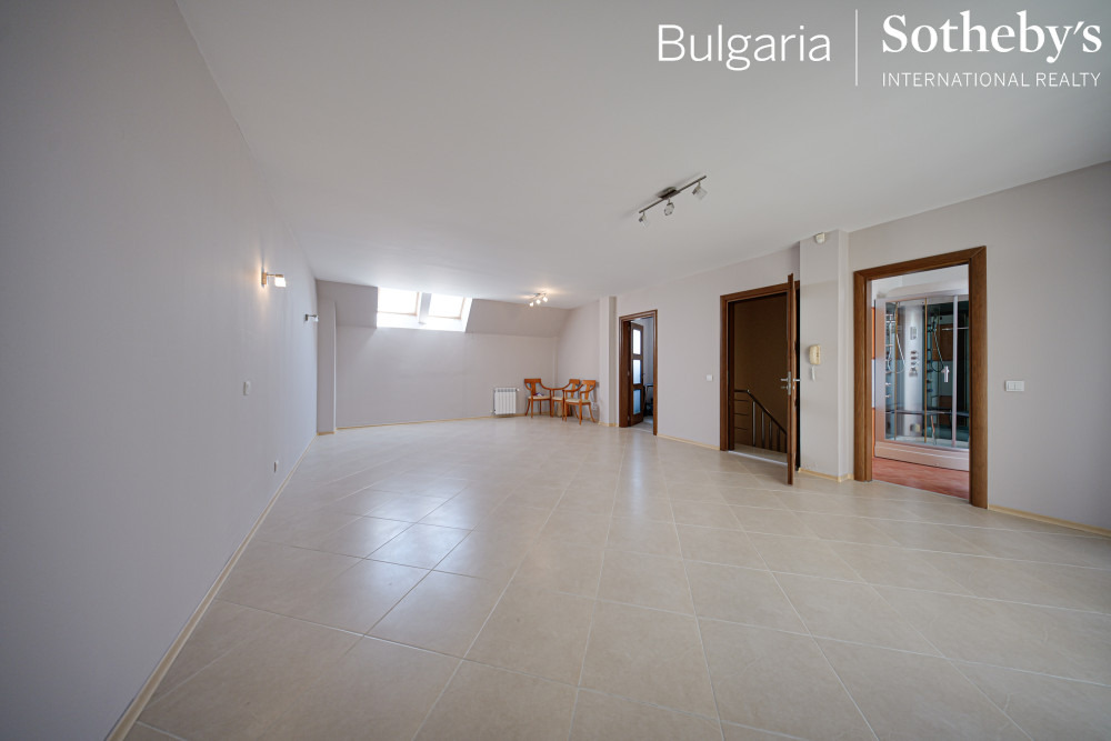 Трето ниво: голямо помещение, което може да се обособи като спалня, студио, ателие със самостоятелна баня с тоалетна.