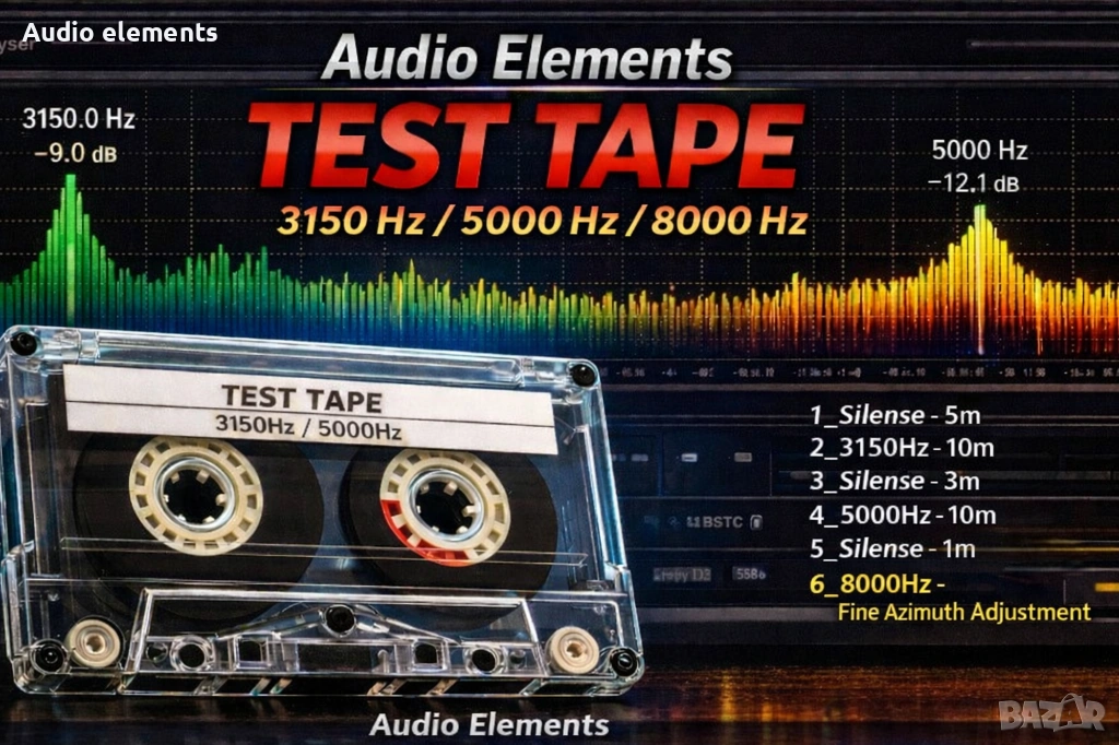 Не е фабрична референтна касета, а практичен сервизен инструмент.Тази тест касета не е само за сервизни техници. Тя е за всеки, който има касетен дек, обича аналоговия звук и иска да знае, че техниката му работи така, както трябва. С нея можеш лесно да провериш скоростта на дека, стабилността на механиката и настройката на главите – без специални уреди, без разглобяване, без риск. Независимо дали имаш стар дек от младините си, или тепърва възнамеряваш да си купиш касетен дек, тази тест касета ти дава увереност, че звукът който чуваш, е верен. Това е практичен инструмент за всеки любител на касетния звук – не само за сервиза, а за дома. Не се изискват технически знания. Достатъчно е да пуснеш касетата и да слушаш или наблюдаваш честотата с компютър или приложение на телефона.