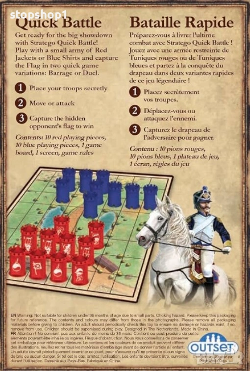 Stratego Quick Battle е динамична, сгъстена версия на емблематичната стратегическа игра Stratego, предназначена за бързи и вълнуващи тактически дуели. Тя е идеална за двама играчи , които искат да се насладят на стратегически геймплей за много по-кратко време.