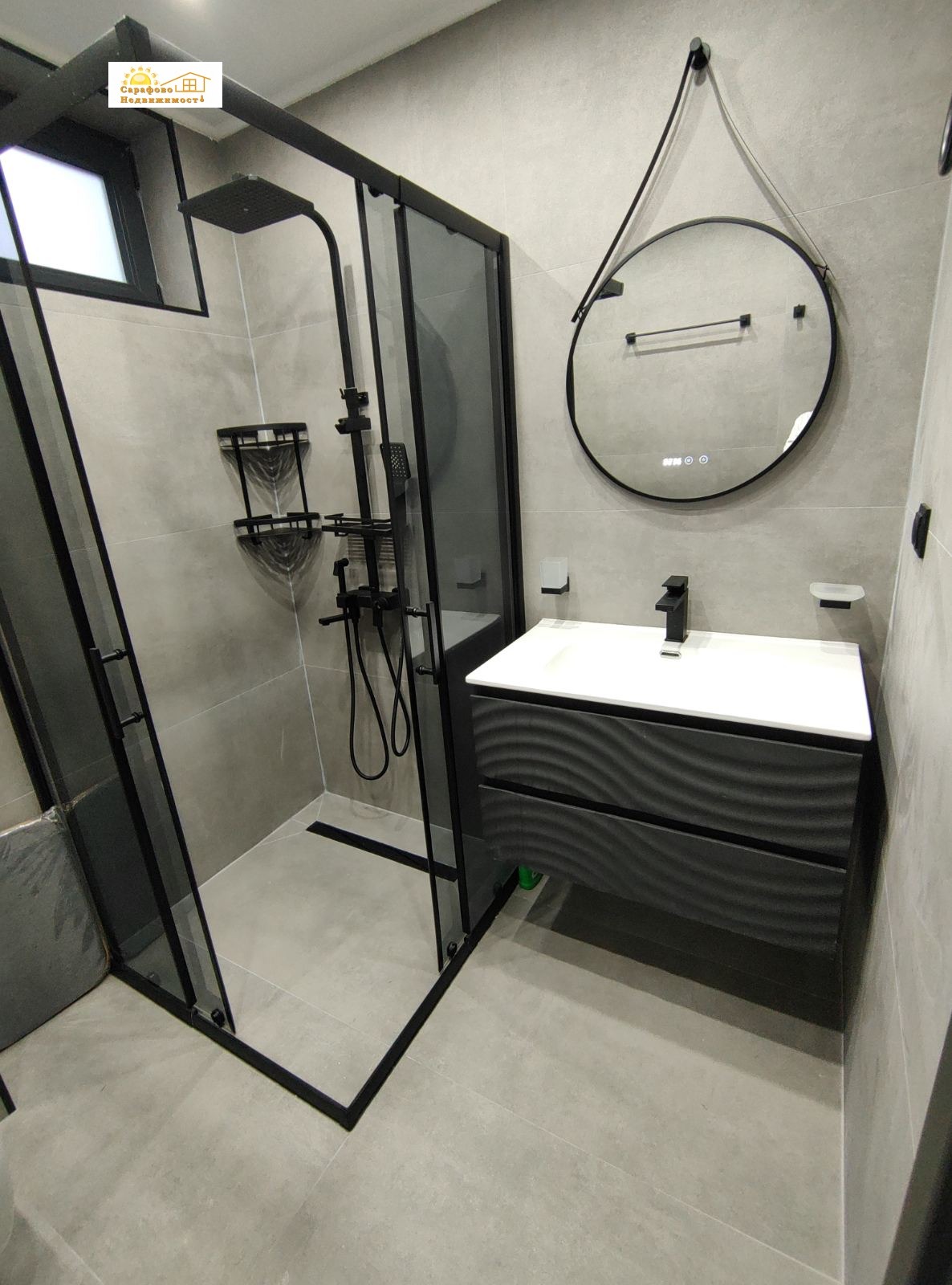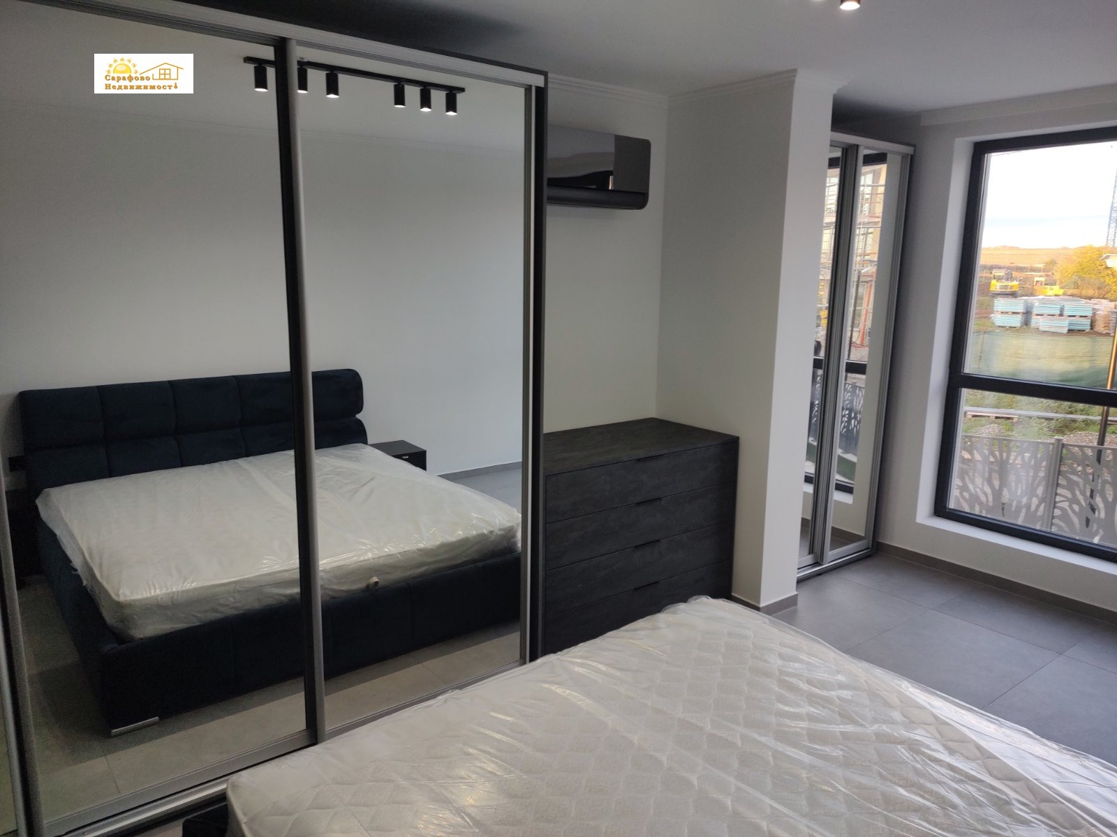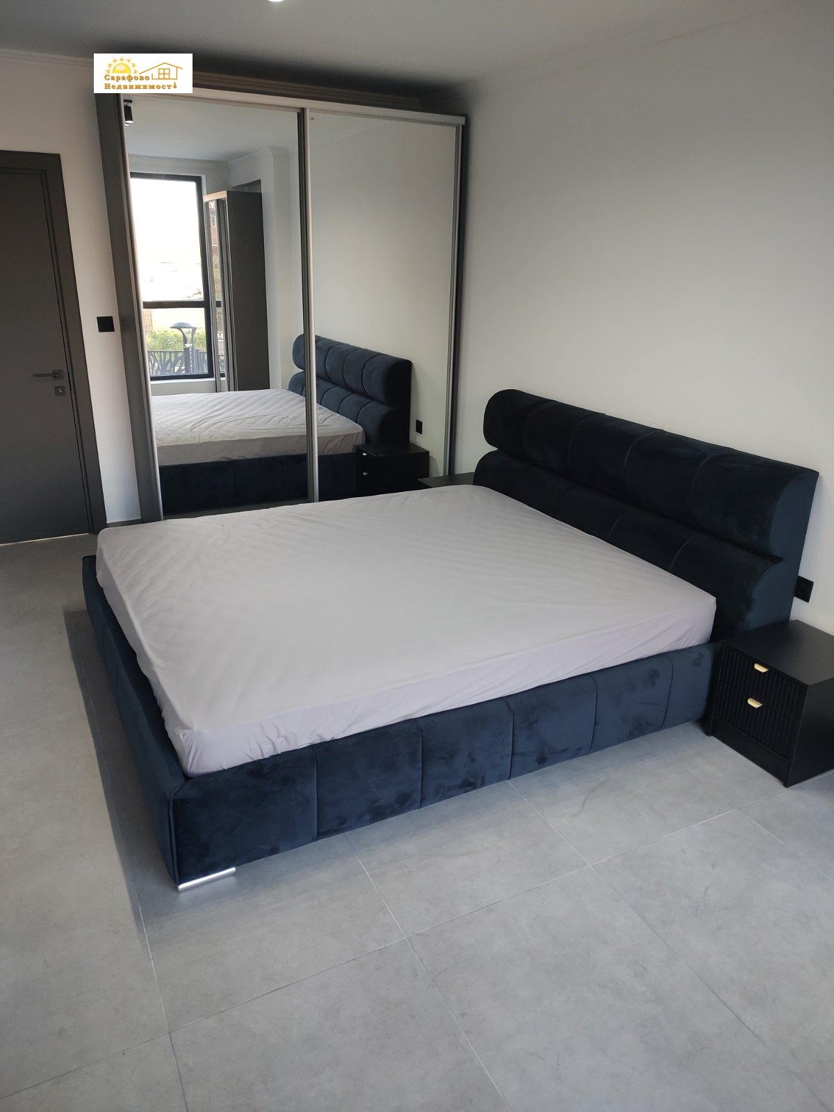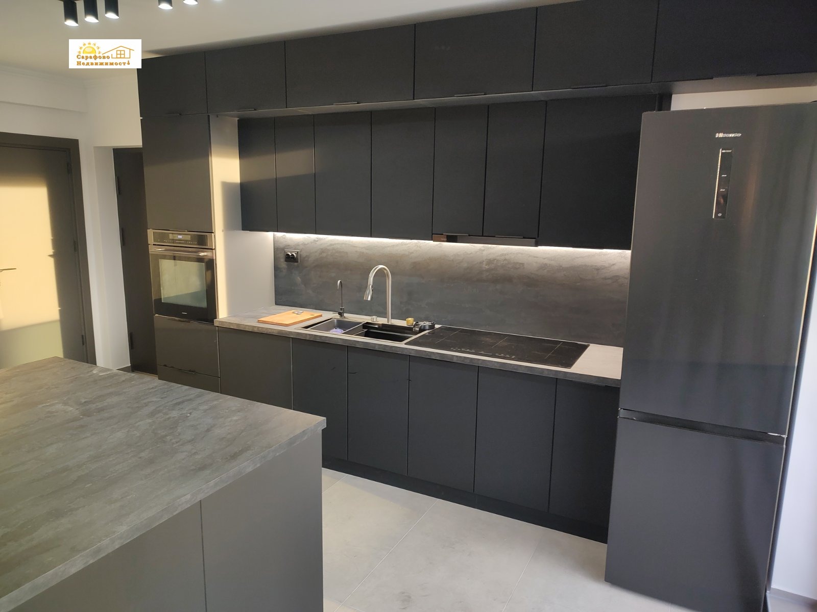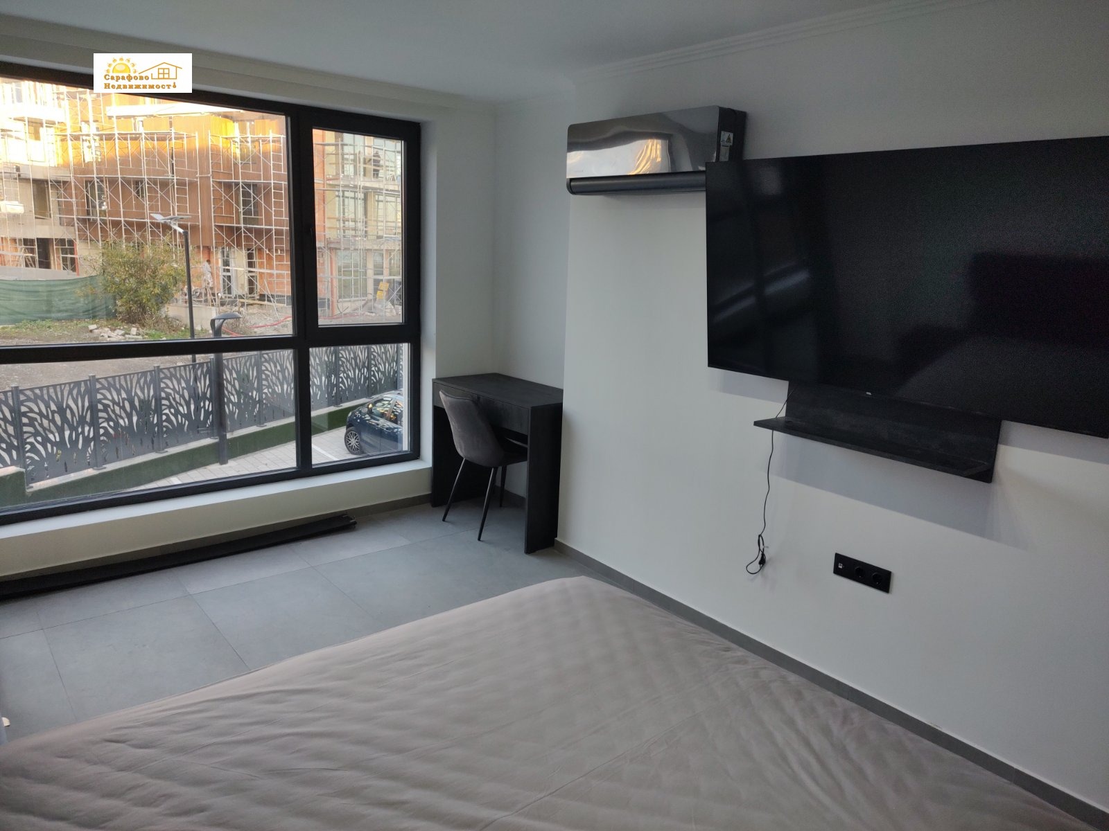 Луксозен тристаен апартамент под наем на първа линия с просторна дневна и спални. Имотът е в луксозна сграда разположена до самият плаж на кв. Сарафово. Жилището се предлага за първи път под наем, като към месечният наем е включена такса поддръжка на сградата и две паркоместа.