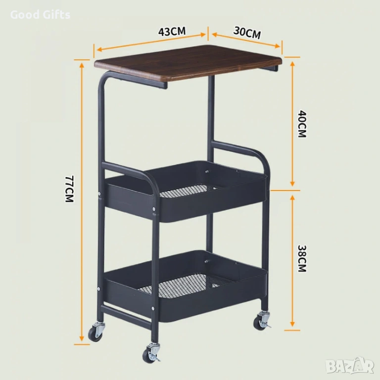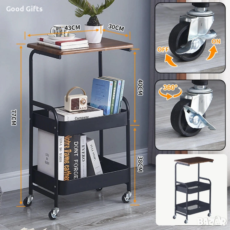 Приложение: Масичка за кафе, нощно шкафче, поставка за лаптоп, кухненска количка.