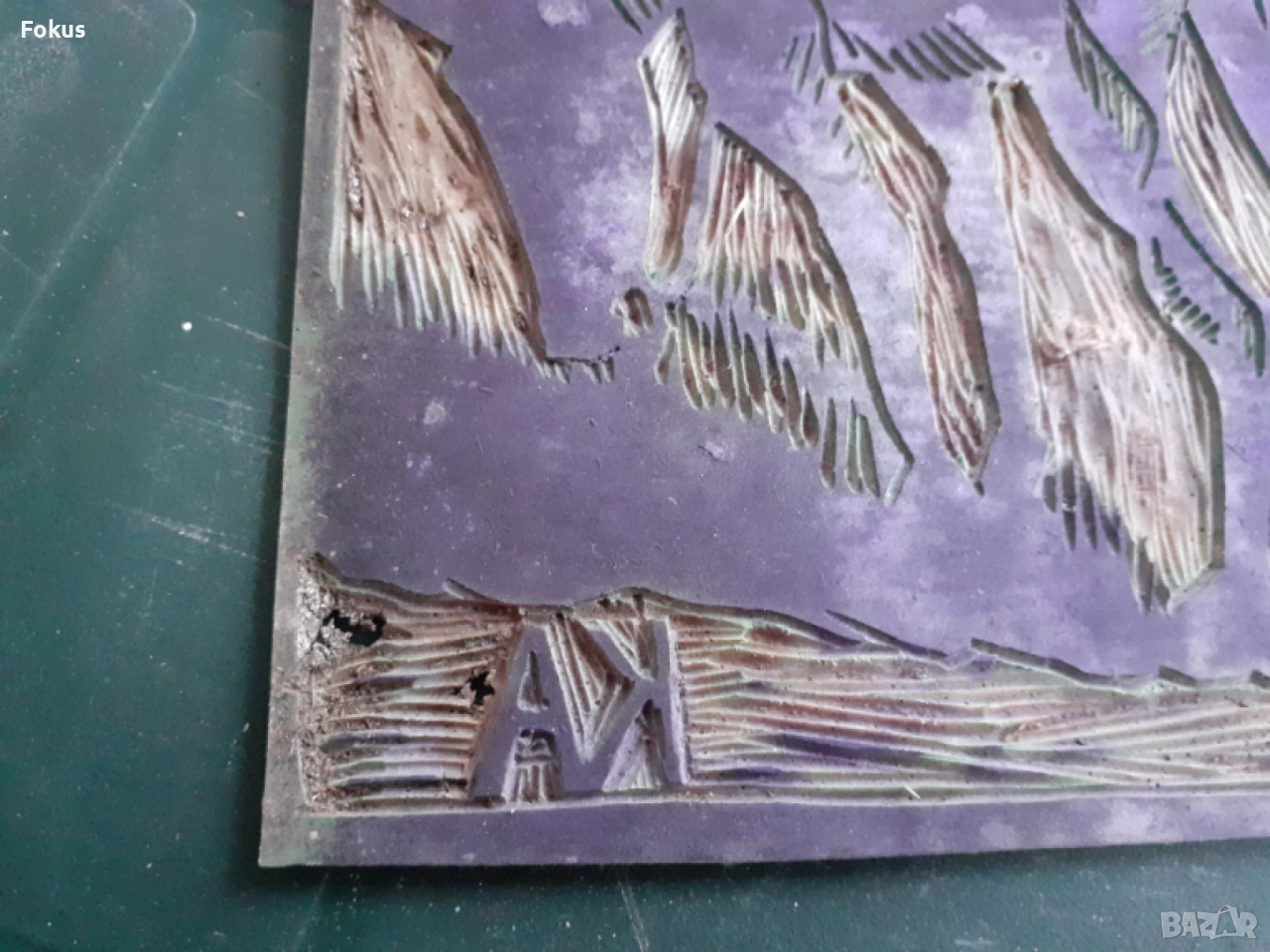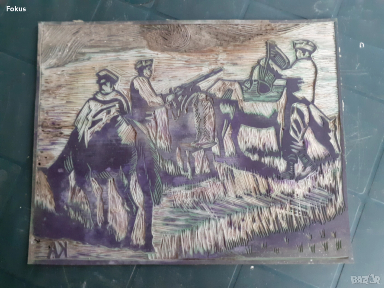 Оригинална стара матрица за линогравюра с подпис КА → Обява 53285703