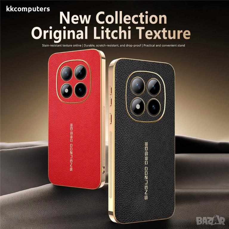 Луксозна личи текстура и копринено усещане: Комбинацията от PU кожа с уникална личи (litchi) текстура и галванизирана метална рамка придава на калъфа изключително приятно тактилно усещане и луксозен вид.
