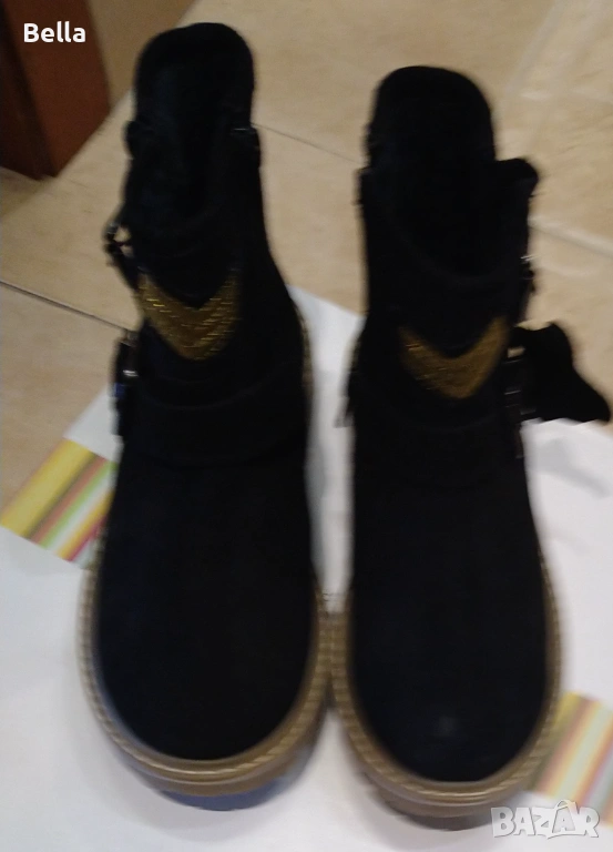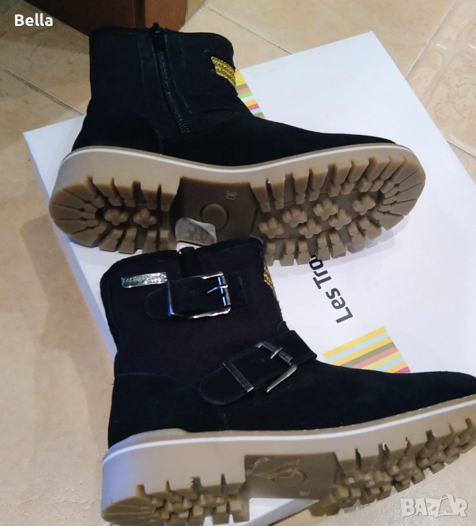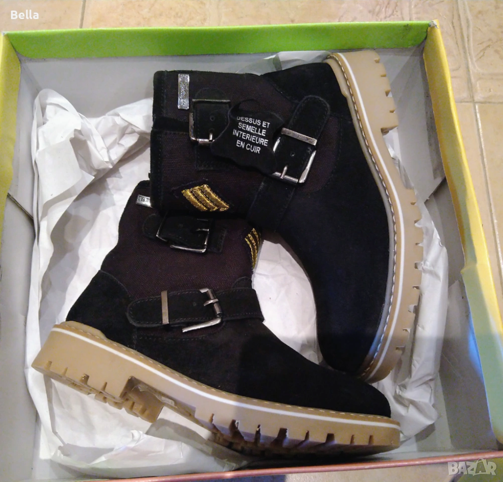Нови,черни боти за момиче. 30 номер, естествена кожа. Марка Les Tropeziennes. Имат фабричен дефект, последна снимка.