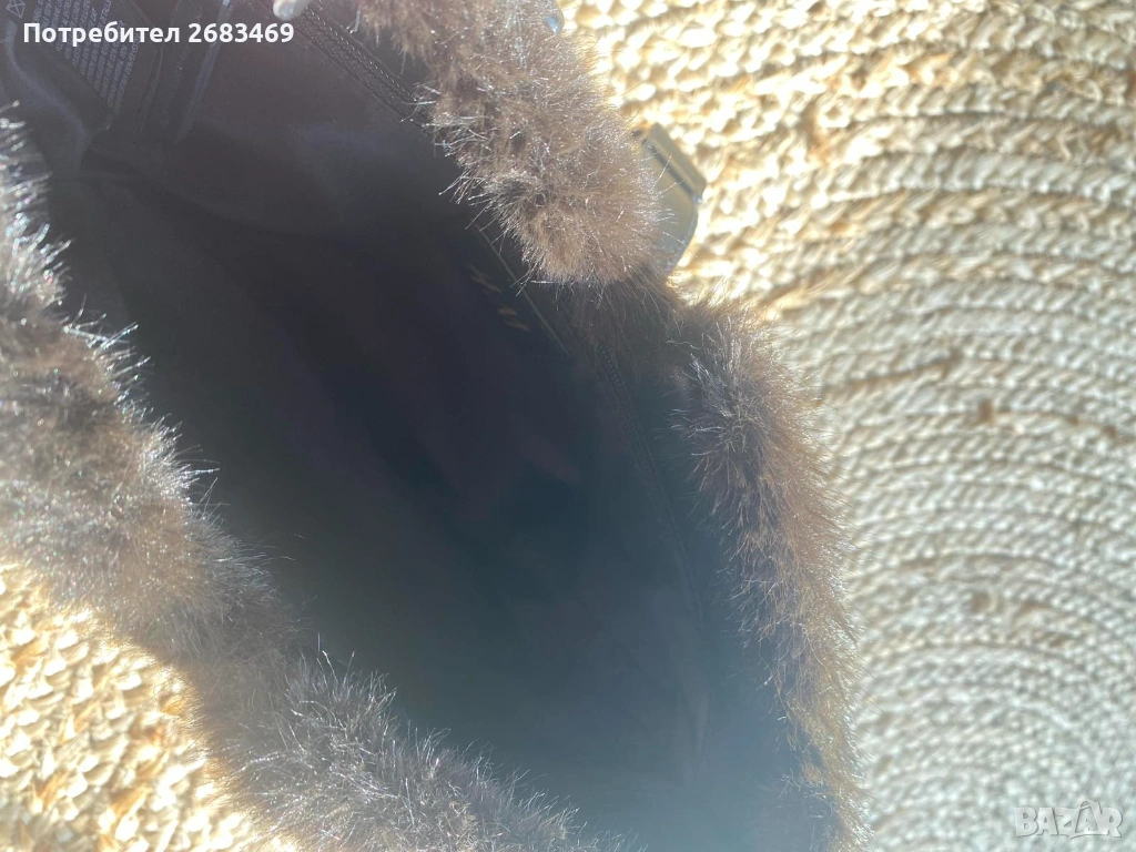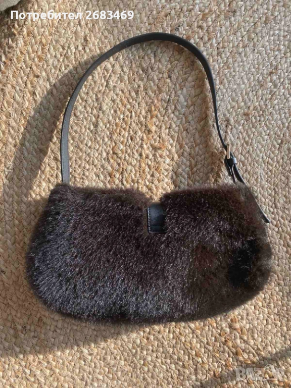 Тъмнокафява пухкава чанта с къса дръжка и златен елемент, много мека и стилна. Подходяща за есен/зима и вечерни визии. В отлично състояние.