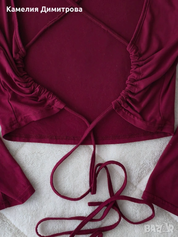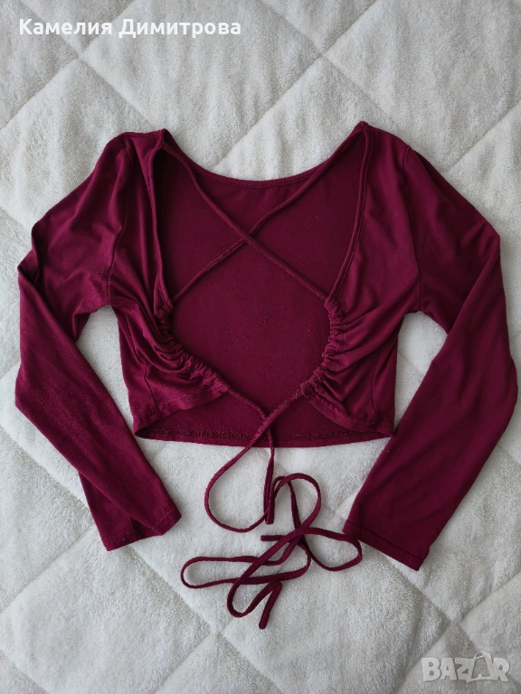 Бордо къс топ с връзки и ефектен гръб → Обява 53286043